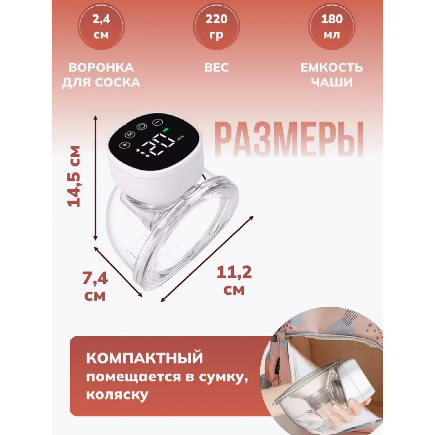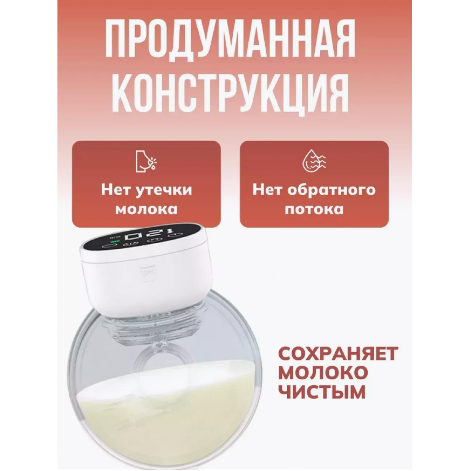 С ним ВАШИ руки будут всегда свободны! Эффективный электрический молокоотсос с LED-дисплеем для кормящих мам и их малышей! Сделан из экологически чистого пластика, а силиконовая насадка устройства имеет идеальный угол охвата для оптимальной адаптации к вашей груди. Идеальное решение для кормления: Наш умный аксессуар создан, чтобы облегчить процесс сцеживания грудного молока для мам и обеспечить вашего новорожденного малыша необходимым питанием. Контейнер молокосборник устроен так, чтобы избежать протечки и обратного всасывания с помощью специального утконосов клапана. 4 режима и 9 скоростей: Насладитесь разнообразием режимов вакуумного сцеживания, включая режим массажа груди, который способствует стимуляции лактациии, снимает болевое ощущения и уменьшает риск застоя (лактостаза). Подберите настройки, которые подходят именно вам. Тихая работа: Наш портативный молокосос работает почти бесшумно, имея мощный мотор, что позволяет вам сцеживать молоко, даже когда ваш малыш спит. Никаких беспокойных шумов, только спокойствие и комфорт. Долгая работа без подзарядки: Используйте аппарат без провода в течение 1,5 часов без необходимости подзаряжать устройство. Это обеспечивает вам непрерывность процесса. Свободные руки: Молокоотсос легко крепится на грудь и помещается в бюстгальтер, позволяя вам освободить руки для других задач или просто отдыха. Компактный размер: Удобно класть в маленькую сумку, легко можно взять в роддом или на прогулку с малышом, а также в путешествие. Обеспечьте своему малышу лучшее вскармливание и себе - удобство и комфорт во время материнства. Идеально подойдет, как подарок для будущей мамы, беременной женщины на праздник, Новый год, день рождения или роды. Наш молокоотсос для мам - надежный и незаменимый помощник в этом невероятно важном периоде вашей жизни. Инструкция на русском языке в комплекте.
