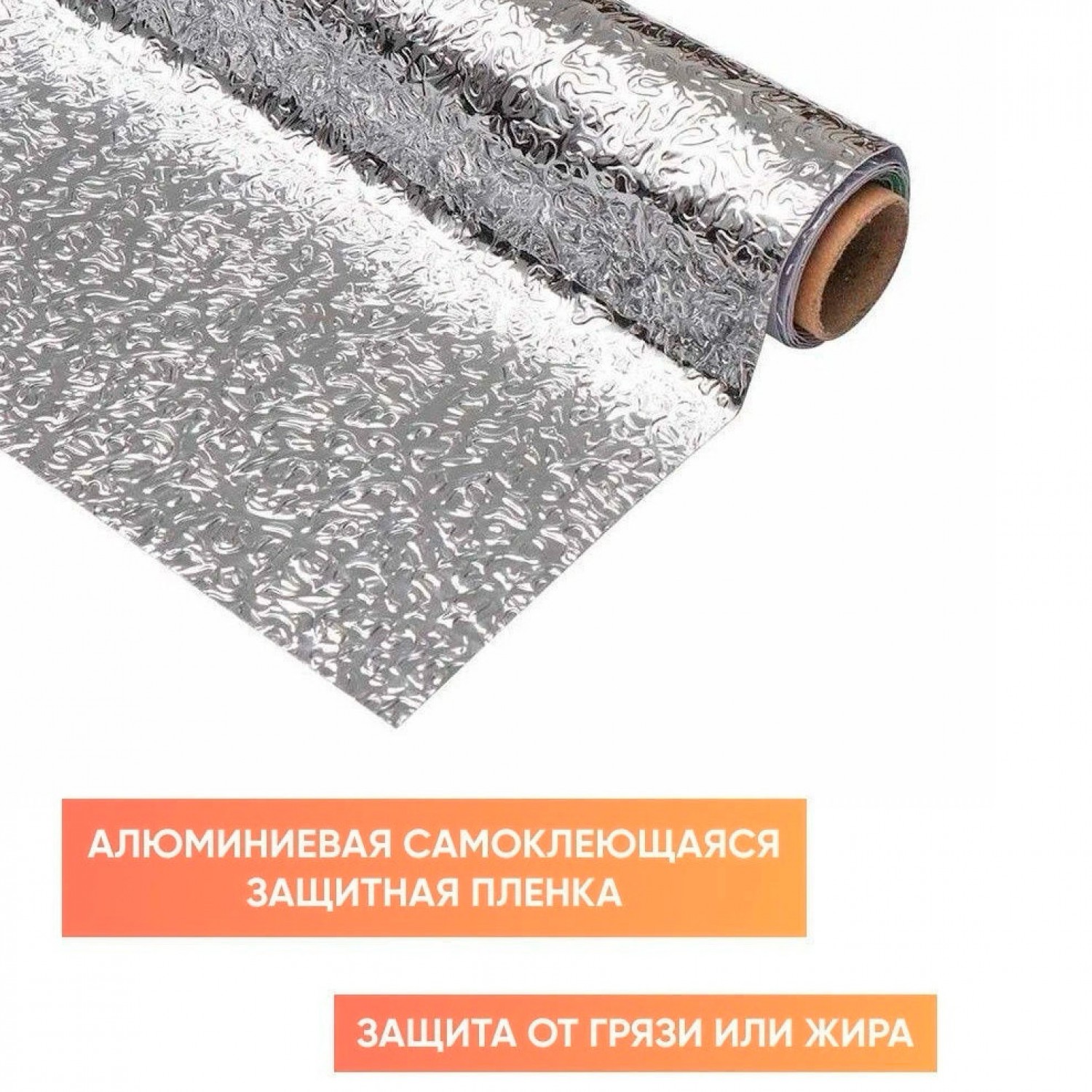 Самоклеящаяся фольга-стикер решает все проблемы, которые могут возникнуть на кухне, она будет отодвигать ремонт всё дальше и дальше, сохраняя в целостности все отделочные материалы. Кроме того, изделие облагородит интерьер вашей кухни: фольга имеет актуальный стальной цвет и необычную перфорацию.