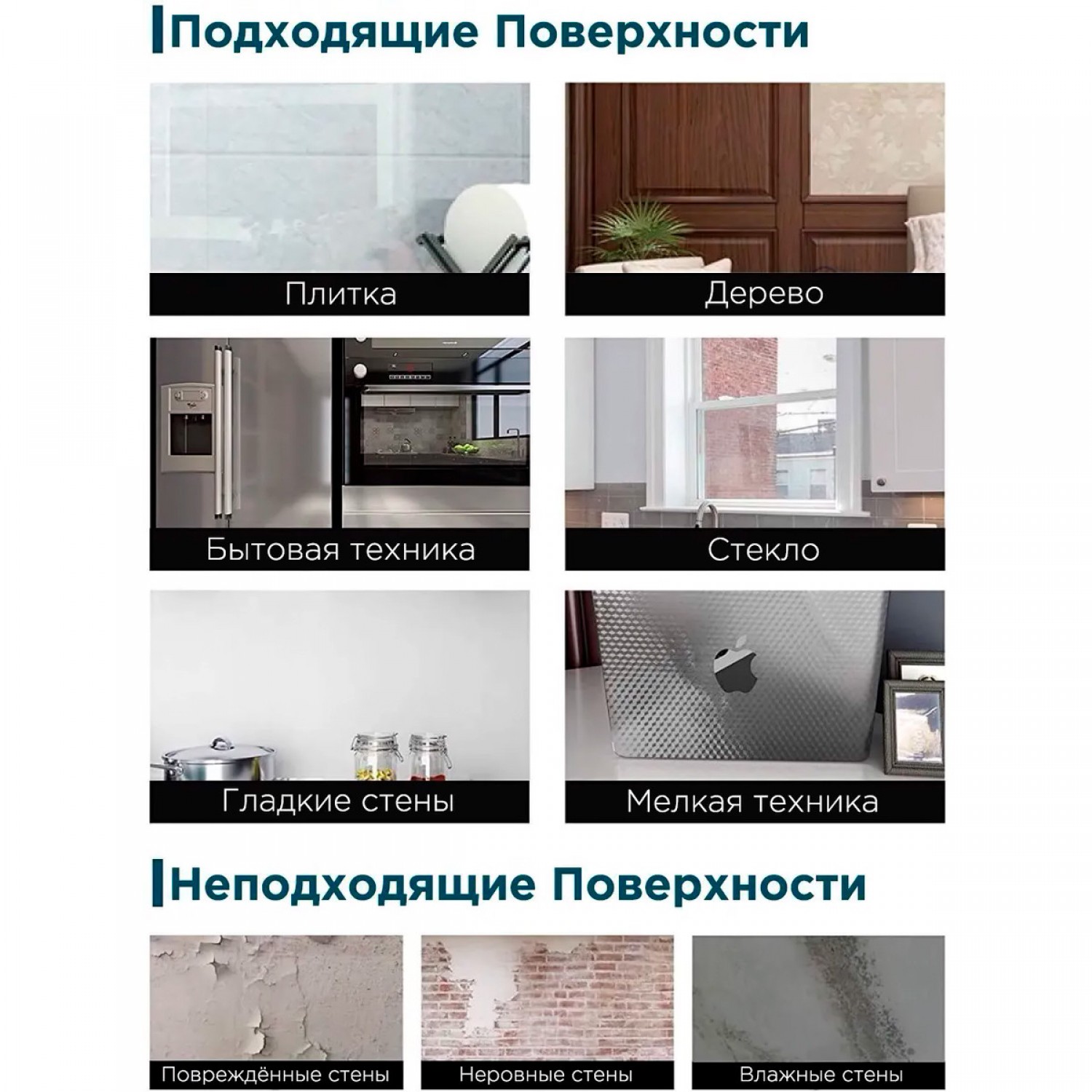 Вы можете поместить алюминиевый стикер на любую плоскость: как горизонтальную, так и вертикальную.