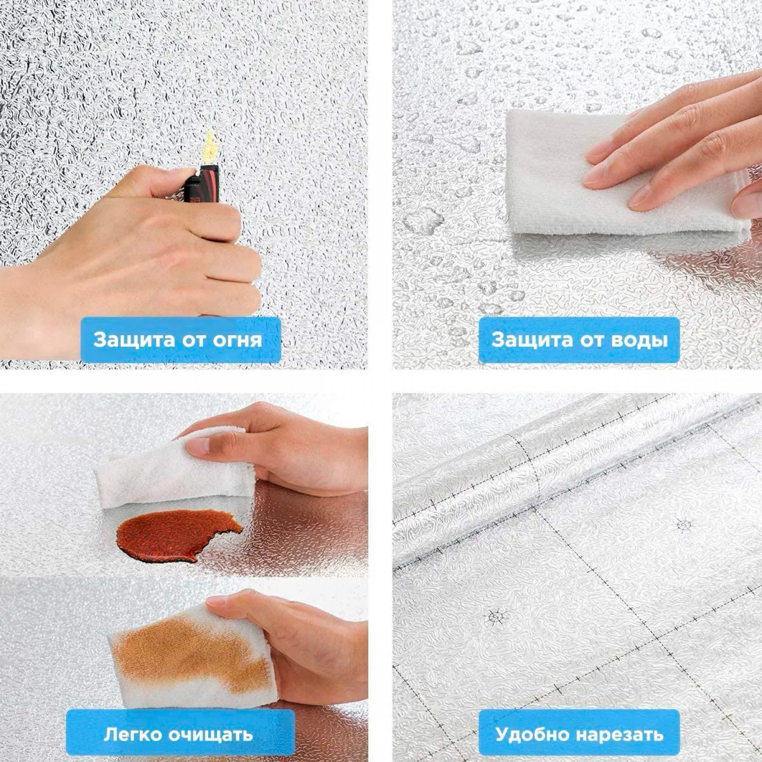Столешницы и отделочные материалы быстро теряют визуальную привлекательность из-за воздействия воды, тепла и жира. Чтобы сохранить кухню в идеальном состоянии, была придумана алюминиевая фольга-стикер. Она отталкивает воду и грязь, не боится огня, выдерживая любые механические повреждения.
