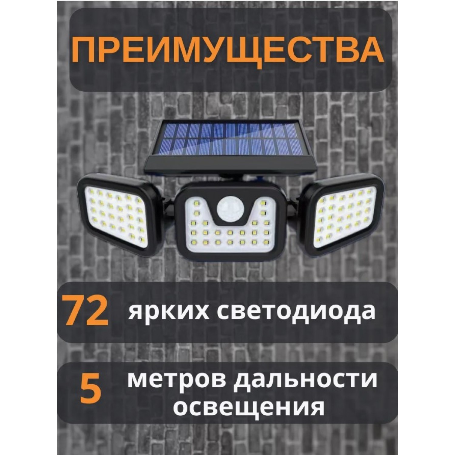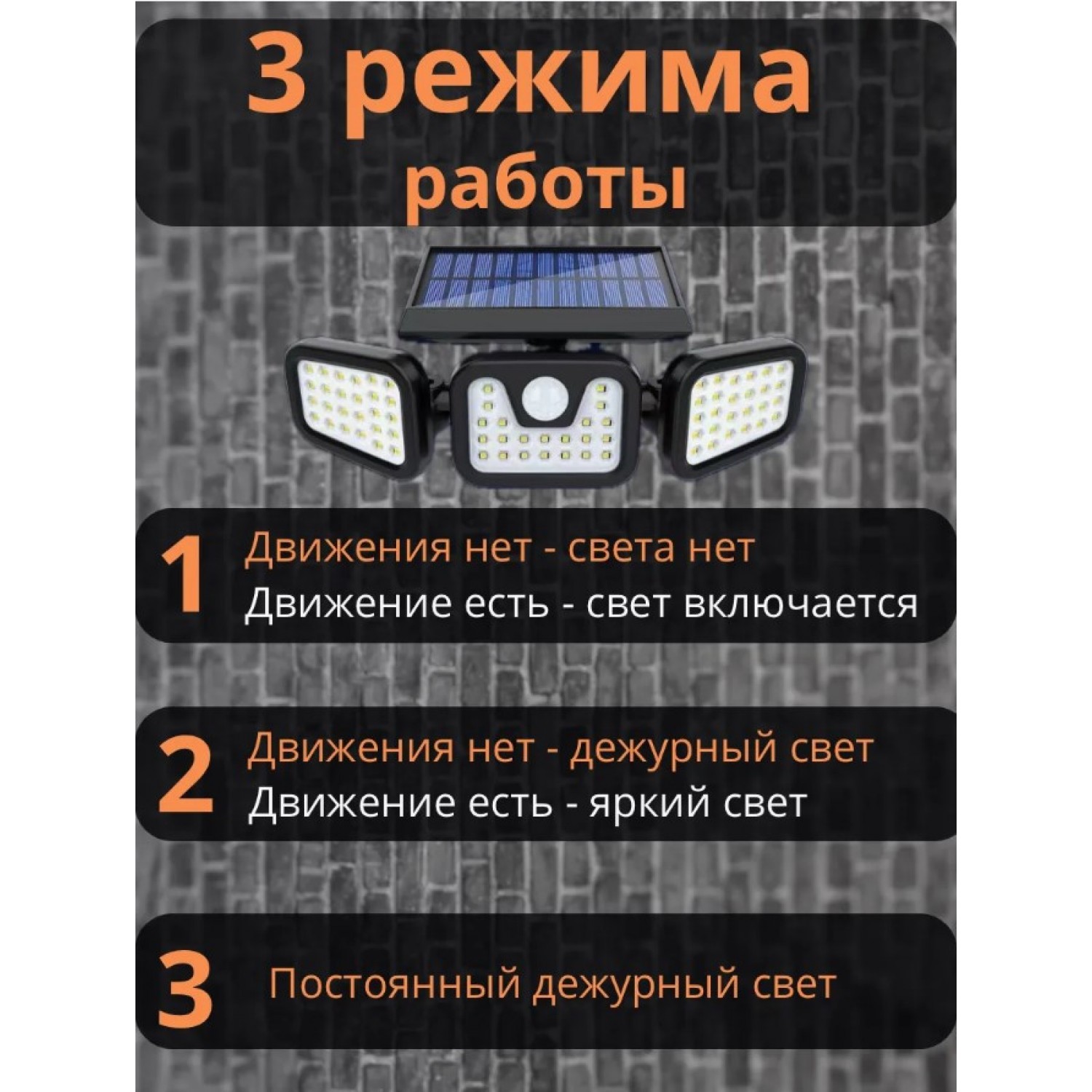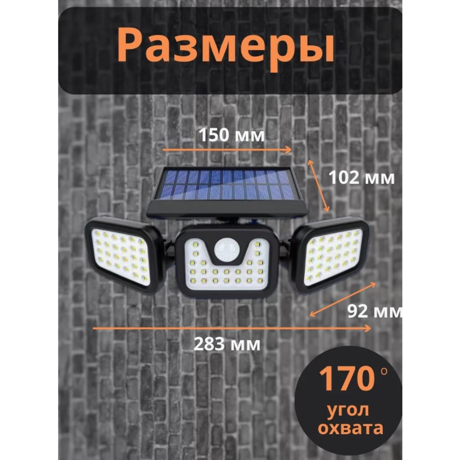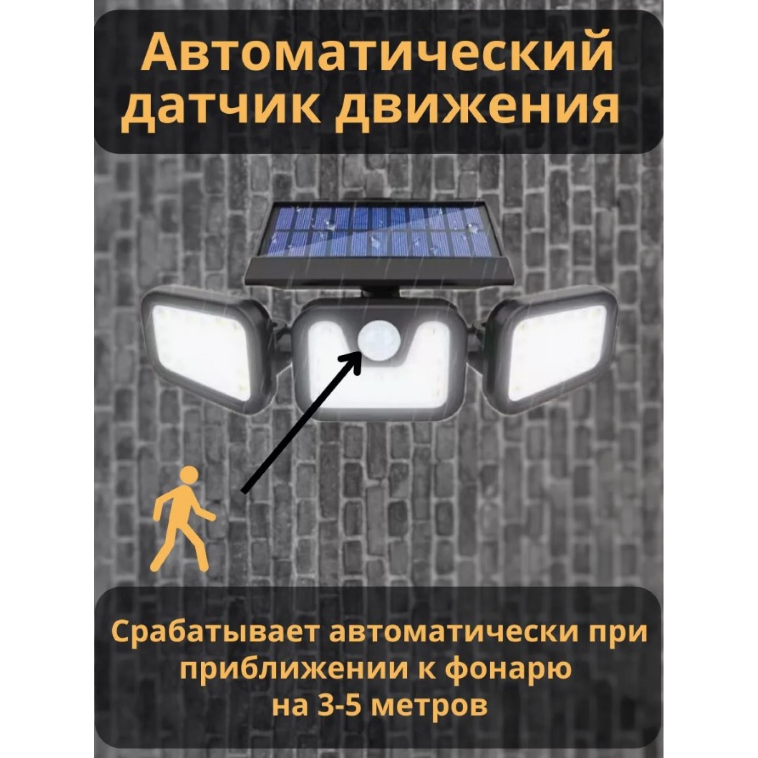 Светильник уличный беспроводной на солнечной батарее — практичное и экологичное решение для освещения территории. Оснащен умным датчиком движения, который автоматически включает свет при обнаружении активности в радиусе до 5 метров. Уличный фонарь светодиодный обладает высокой яркостью и способен осветить площадь около 30 квадратных метров, что делает его отличным выбором для дачи, сада или двора. Максимальный световой поток 600 люмен. Эта уличная лампа имеет ударопрочную конструкцию, что обеспечивает долговечность даже при интенсивном использовании. Благодаря степени защиты IP65 фонарь на солнечной батарее надежно защищено от пыли и влаги, выдерживает любые погодные условия и подходит для эксплуатации в любое время года. Прожектор оснащен тремя режимами работы и двумя уровнями яркости, которые легко регулируются в зависимости от ваших потребностей. Это позволяет создать комфортное освещение как для повседневного использования, так и для специальных задач. Конструкция предусматривает возможность настройки положения корпуса, чтобы направлять поток света под нужным углом. Умный светильник с датчиком движения функционирует без подключения к электросети благодаря встроенной солнечной панели. Это экономит электроэнергию и способствует заботе об окружающей среде. Беспроводной фонарь мощный легко устанавливается на любую поверхность без необходимости прокладывать кабели. Всё необходимое крепление в комплекте. Такой уличный светильник подойдет для оформления дачных участков, дорожек или входных зон. Практичный дизайн гармонично впишется в любой ландшафтный стиль. Светильник дачный станет не только источником освещения, но и дополнительной мерой безопасности за счет своевременного включения света при движении. Создайте уютную атмосферу у себя во дворе или саду!