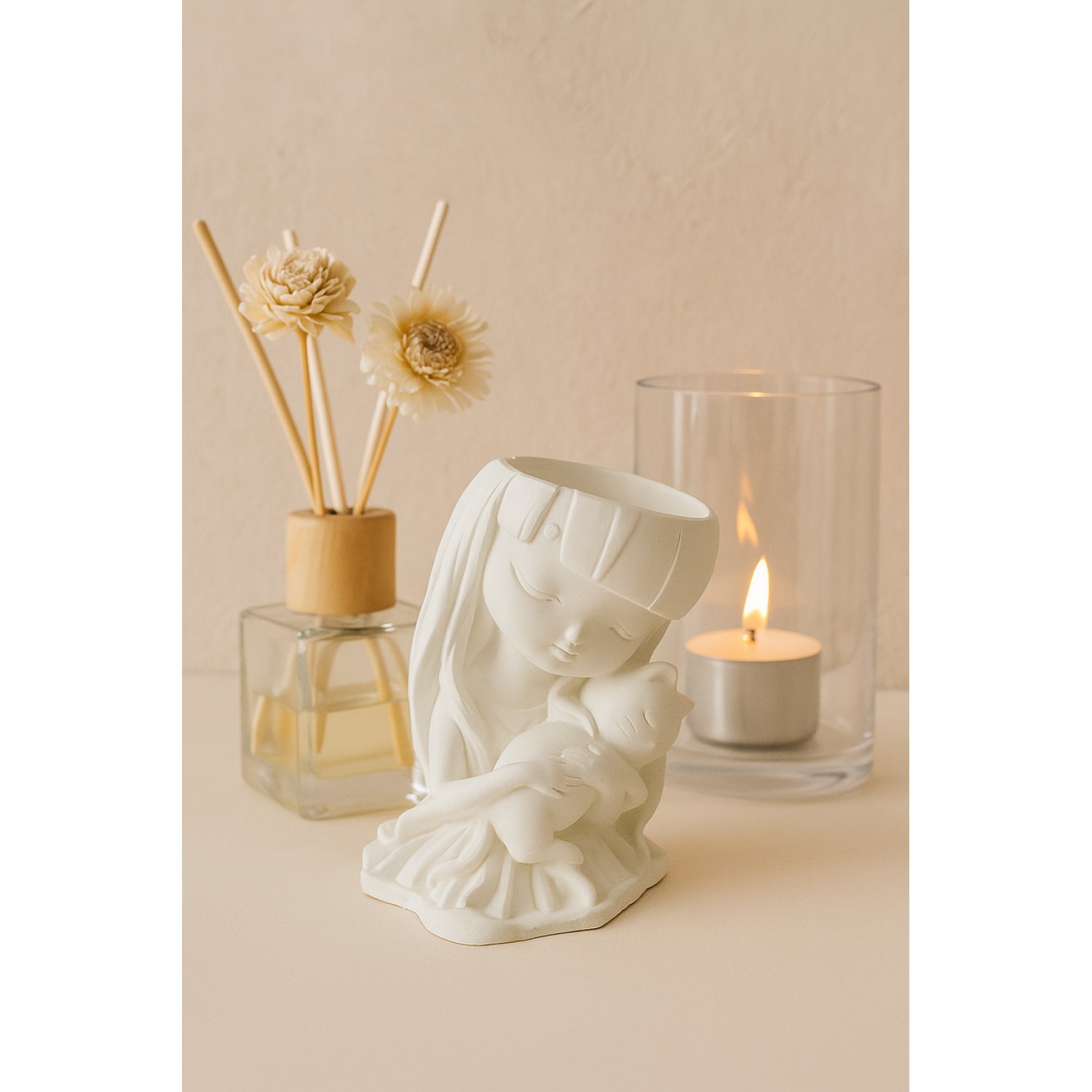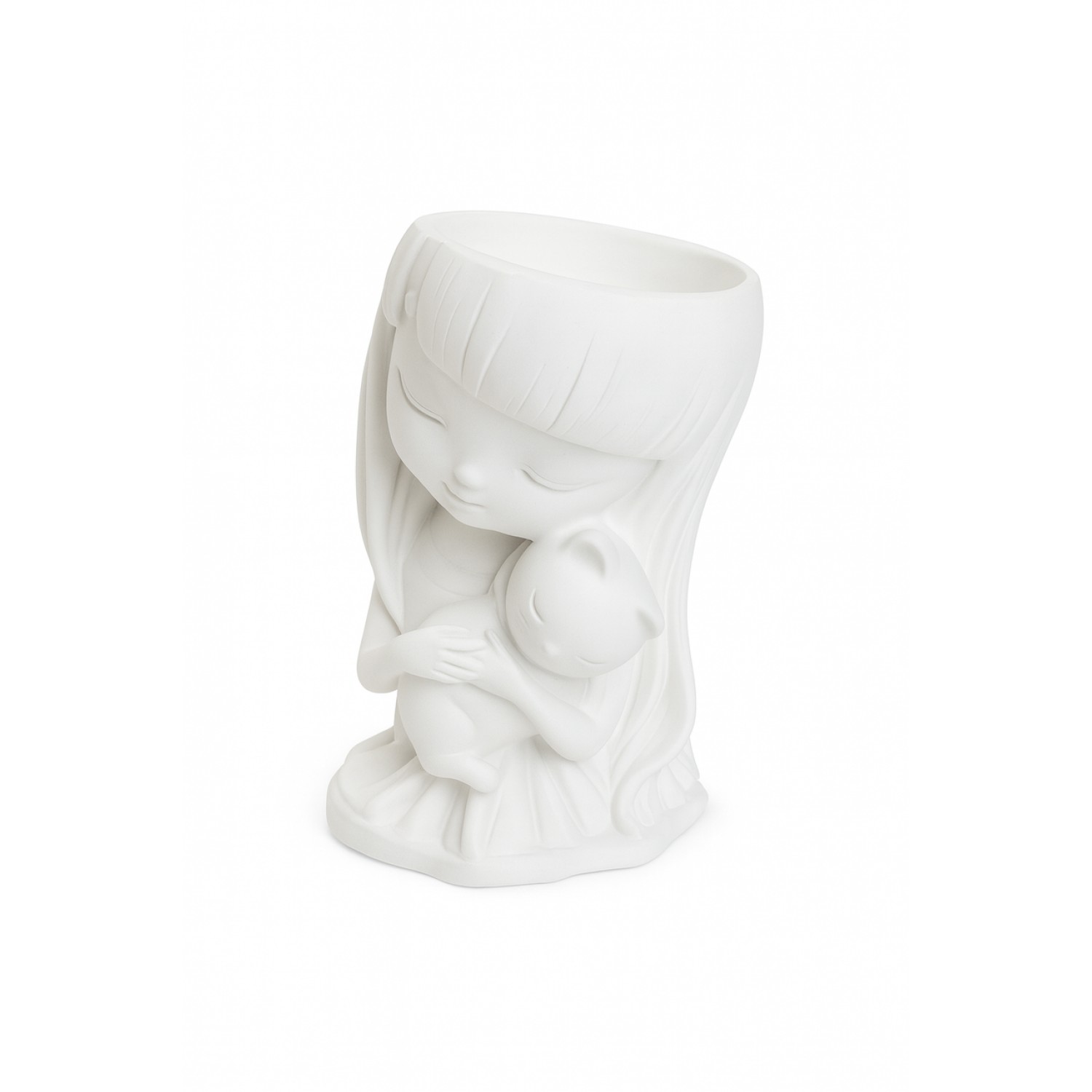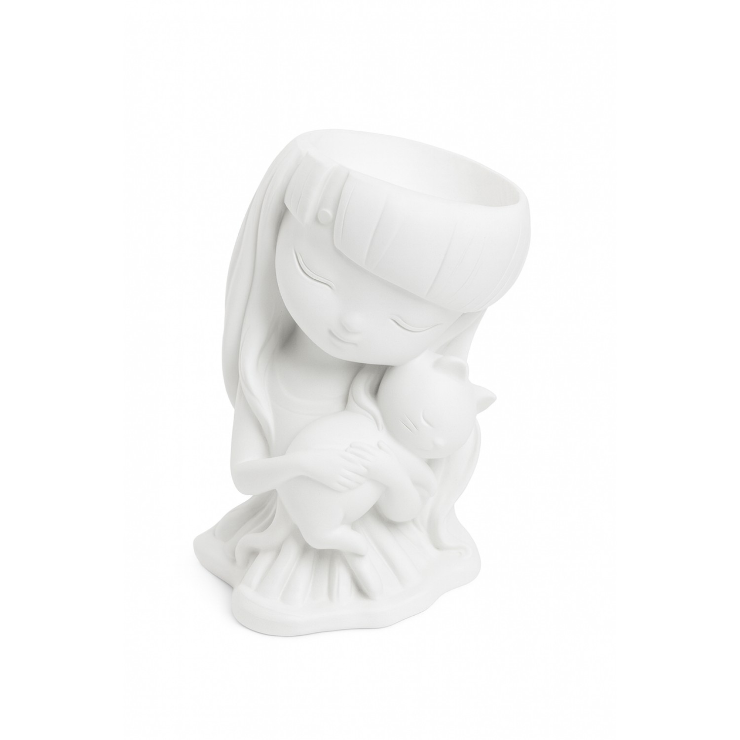 Интерьерная статуэтка из гипса Девочка с котенком. Выполнена из экологически чистого, высокопрочного гипса, она имеет плоское дно, благодаря чему устойчивая и удобная. Идеально впишется в любой интерьер дома, кафе, ресторана, салонов красоты и студии красоты или любого другого общественного заведения. Белая минималистичная декоративная фигурка будет уместна в стиле: классика, лофт, модерн, ар-деко, фьюжн, хай-тек и других. Предметы интерьера, которые оценят девушки, и будут гармоничны даже в офисе серьезного мужчины. Гипсовые статуэтки - необычный и модный декор для дома, это товары для дома, которые радуют глаз и поднимают настроение. Отдельные маленькие детали можно долго рассматривать. Гипсовые изделия - это необычные опоры, подставки для книг на полку, украшение комнаты. Гипс чувствителен к воде, поэтому, чтобы статуя вас радовала длительное время и не повредилась, рекомендуем покрыть ее акриловых или любым другим гидрофобным лаком. Гипсовые романтичные фигурки это аксессуары для дома, которые станут отличным подарком женщине или мужчине на новоселье или как красивые сувениры на память в любой значимый день. На изделии допускаются мелкие дырочки, которые свойственны предметам из гипса.