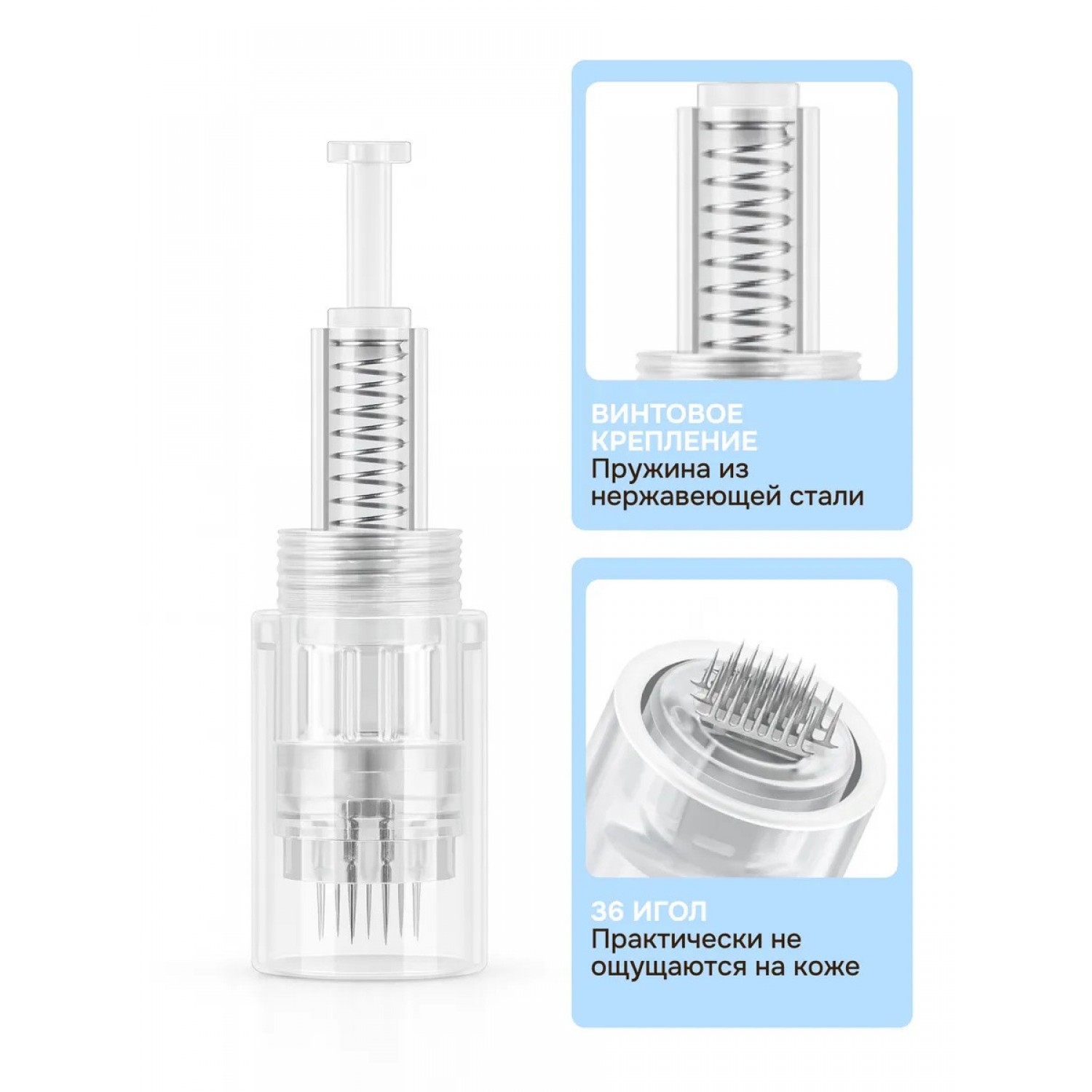 Совместимость: А1, А6, N2, М7, М5, MYM! Обеспечьте безопасность и высокую эффективность ваших косметологических процедур с одноразовыми картриджами для дермапена. Этот набор сменных насадок на 36 микроигл специально разработан для деликатных омолаживающих манипуляций на лице и теле. Идеально для чувствительных зон: Длина игл делает этот заменяемый блок оптимальным выбором для щадящего микронидлинга, области вокруг глаз, шеи и декольте. Он дает действенное проведение фракционной мезотерапии с минимальным дискомфортом и быстрым восстановлением. Высокая плотность и результативность: Конфигурация из 36 тонких наконечника гарантируют оптимальную интенсивность воздействия, создавая множество микро-каналов для лучшего проникновения активных сывороток и стимуляции естественного обновления кожи. Гарантия стерильности и гигиеничности: Каждый модуль предназначен для индивидуального применения, что исключает риск инфицирования и перекрестного загрязнения, обеспечивая максимальную защиту как в салонных, так и в домашних условиях. Поставляются в индивидуальных упаковках. Универсальное применение: Подходит не только для омоложения и улучшения качества кожи (борьба с морщинами, пигментацией, постакне), но и может использоваться для сеансов на теле и в рамках ухода за кожным покровом головы для волос. Простота и надежность: Оснащены стандартным креплением байонет, что позволяет быструю и надежную установку на аппарат Dr.Pen и его аналоги. Используйте качественные насадки Доктор Пен - это основа результативной, безопасной и комфортной процедуры дермароллинг, ведущей к заметному совершенствованию тонуса, текстуры и цвета эпидермиса.