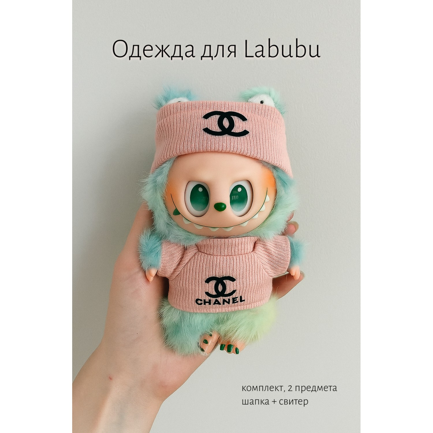 Комплект одежды для LABUBU ЛАБУБУ, розовый свитер и шапка chanel