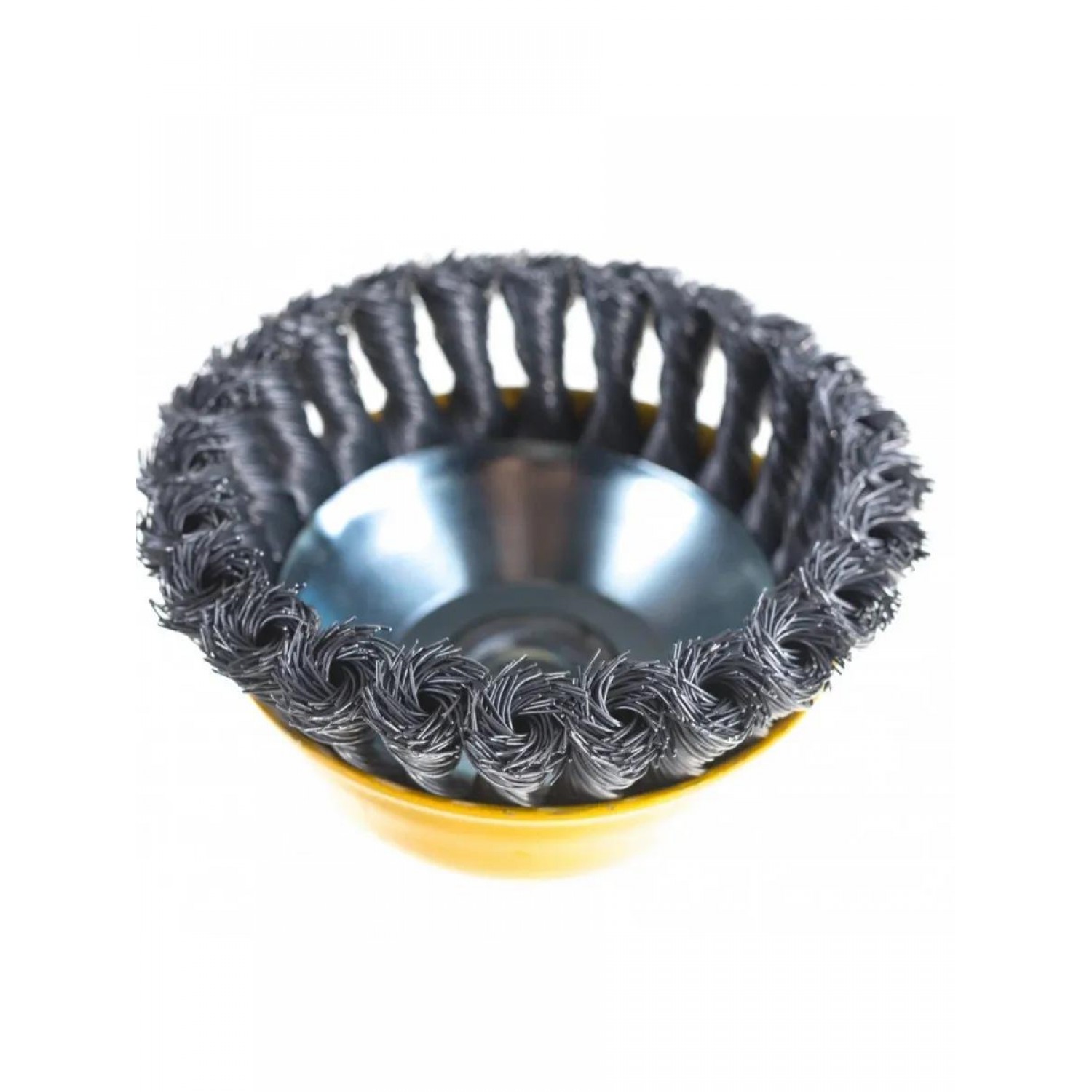 Латунированная чашеобразная щетка - ваш незаменимый помощник при подготовке поверхностей. Эта железная насадка для УШМ с витой стальной нержавеющей проволокой в виде косички успешно избавляет от следов коррозии и накипи, а также помогает в абразивной обработке перед пайкой или покраской. Шлифовальная чашечная крацовка на шуруповерт для работы по металлу, стали и древесине. Обдирочный девайс для электроинструмента эффектно уничтожает грязь и краску.