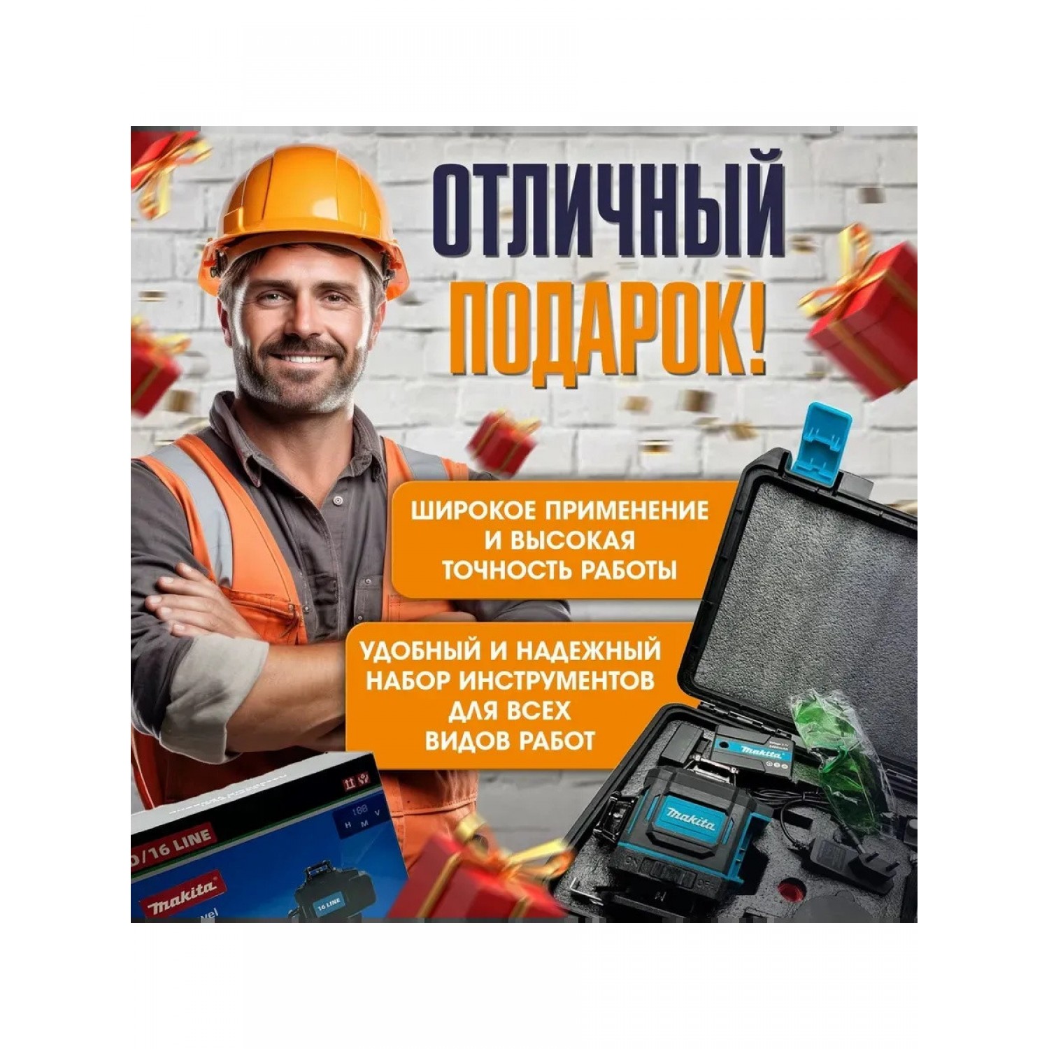 Лазерный уровень нивелир со штативом – строительный инструмент, который обязательно должен быть у вас в арсенале, если вы занимаетесь строительством, ремонтом или даже просто делаете улучшения в дом своими руками. Строительный уровень 4D 16 лучей создан для профессионалов и любителей. Поставляется в прочном и надежном кейсе для удобного хранения и переноски вместе с аксессуарами. Способен охватывать 360 градусов на любой поверхности. Самовыравнивающийся прибор быстро определяет наклон и выстраивает все линии в точности, экономя ваше время и силы на получение необходимого результата. Оснащен мощным зеленым свечением, позволяющим формировать лучи даже в ярком свете. Имеет тонкие и интенсивные полосы, идеально подходящие для применения как в помещении, так и на улице на дальнем расстоянии. Практичен. Максимальная погрешность составляет всего 0,2 мм/м. Измерительная лента и электронный угломер, встроенные в нивелир, обеспечивают более результативные измерения. Обладает функцией самовыключения и оповещения о низком заряде батареи. Вы сможете легко выбрать нужные опции с помощью пульта управления. Функционирует от усиленного литий-ионного аккумулятора. 2 штуки входят в комплект. Это гарантирует использование на длительный период без проблем и перебоев. Откалиброван с завода и проверен по гидроуровню. Дизайн и конструкция продуманы до мелочей. Он компактный и легкий, поэтому его можно использовать даже в труднодоступных местах. Покупайте лазерный нивелир сейчас и получите уникальное приспособление для точной и качественной работы. Он поможет воплотить в жизнь любые проекты и задумки. Это оборудование для настоящих специалистов!