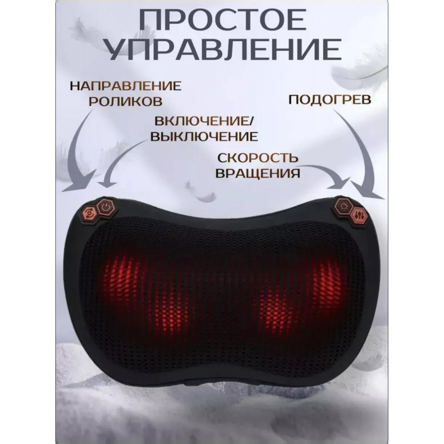 Подушка шиатцу с термороликами и подогревом для дома и автомобиля/Массажер для спины, шеи и плеч. Устройство предназначено для проведения массирования разных частей тела человека. Стимуляция осуществляется при помощи 8 роликов, описывающих круговые вращательные движения. Ролики производят интенсивные разминающие движения по часовой стрелке и в обратную сторону. Они направленно стимулируют проблемный участок и воздействуют на важные точки тела, благодаря чему и достигается эффект расслабления, способствующий устранению общей усталости и снижению напряжения.