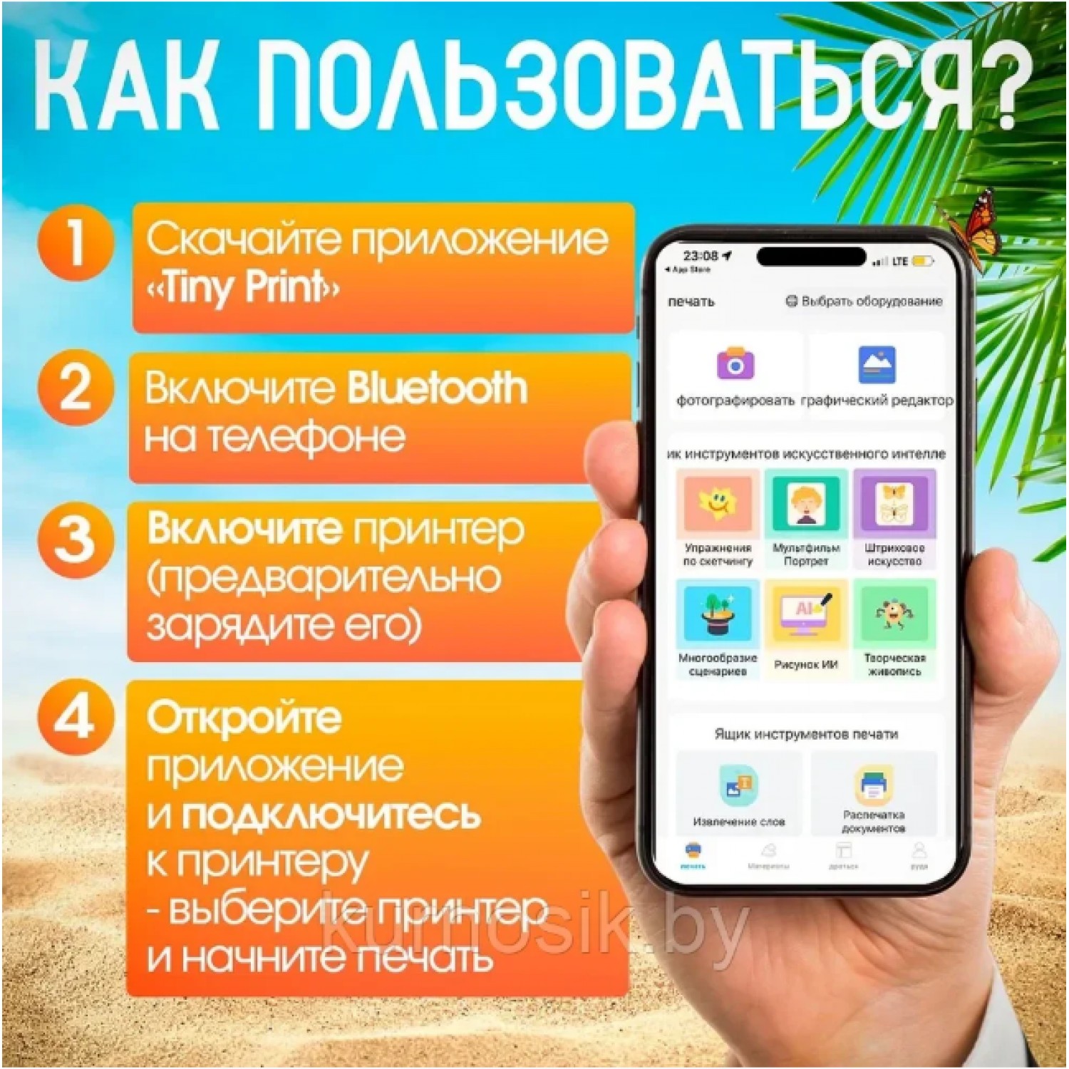 Детский принтер мгновенной печати Мишка X7 - это ультра-компактный, карманный фотопринтер, который способен мгновенно распечатать для вас фотографии, вне зависимости, от того, есть ли рядом розетка или фотобумага. Он занимает мало места и всегда готов к работе. Портативный принтер предназначен специально для детей, он легкий, компактный и удобный в обращении. Для использования термопринтера вам потребуется приложение Tiny Print и функция Bluetooth на телефоне. Инструкция на русском языке по использованию мини принтера детского прилагается в комплекте. Мини принтер для наклеек сопрягается со всеми устройствами на платформе iOS и Android, Windows.