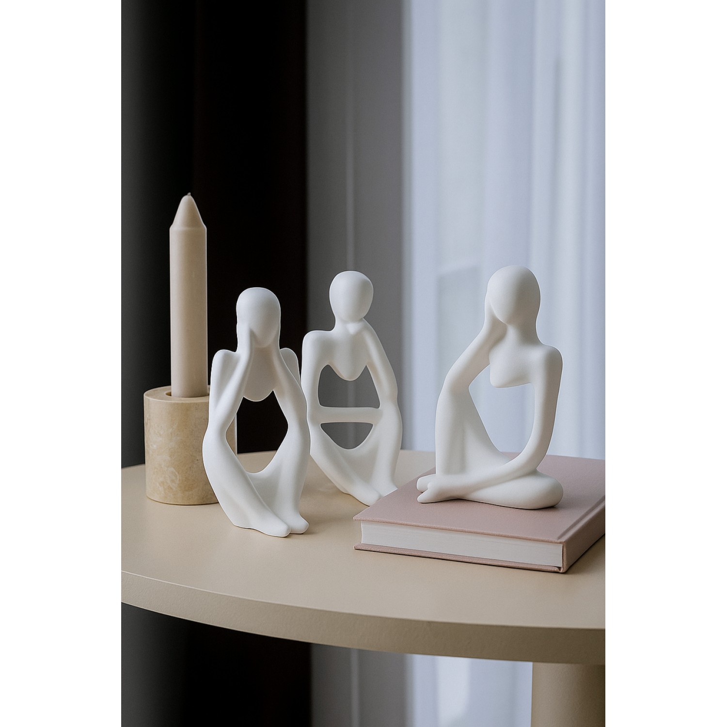 Набор статуэток из гипса Мыслители. Выполнена из экологически чистого, высокопрочного гипса, она имеет плоское дно, благодаря чему устойчивая и удобная. Идеально впишется в любой интерьер дома, кафе, ресторана, салонов красоты и студии красоты или любого другого общественного заведения. Белая минималистичная декоративная фигурка будет уместна в стиле: классика, лофт, модерн, ар-деко, фьюжн, хай-тек и других. Предметы интерьера, которые оценят девушки, и будут гармоничны даже в офисе серьезного мужчины. Гипсовые статуэтки - необычный и модный декор для дома, это товары для дома, которые радуют глаз и поднимают настроение. Отдельные маленькие детали можно долго рассматривать. Гипсовые изделия - это необычные опоры, подставки для книг на полку, украшение комнаты. Гипс чувствителен к воде, поэтому, чтобы статуя вас радовала длительное время и не повредилась, рекомендуем покрыть ее акриловых или любым другим гидрофобным лаком. Гипсовые романтичные фигурки это аксессуары для дома, которые станут отличным подарком женщине или мужчине на новоселье или как красивые сувениры на память в любой значимый день. На изделии допускаются мелкие дырочки, которые свойственны предметам из гипса.