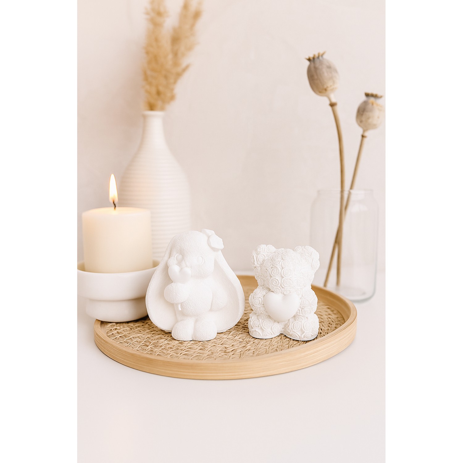 Набор статуэток из гипса Заяц и медведь. Выполнена из экологически чистого, высокопрочного гипса, она имеет плоское дно, благодаря чему устойчивая и удобная. Идеально впишется в любой интерьер дома, кафе, ресторана, салонов красоты и студии красоты или любого другого общественного заведения. Белая минималистичная декоративная фигурка будет уместна в стиле: классика, лофт, модерн, ар-деко, фьюжн, хай-тек и других. Предметы интерьера, которые оценят девушки, и будут гармоничны даже в офисе серьезного мужчины. Гипсовые статуэтки - необычный и модный декор для дома, это товары для дома, которые радуют глаз и поднимают настроение. Отдельные маленькие детали можно долго рассматривать. Гипсовые изделия - это необычные опоры, подставки для книг на полку, украшение комнаты. Гипс чувствителен к воде, поэтому, чтобы статуя вас радовала длительное время и не повредилась, рекомендуем покрыть ее акриловых или любым другим гидрофобным лаком. Гипсовые романтичные фигурки это аксессуары для дома, которые станут отличным подарком женщине или мужчине на новоселье или как красивые сувениры на память в любой значимый день. На изделии допускаются мелкие дырочки, которые свойственны предметам из гипса.