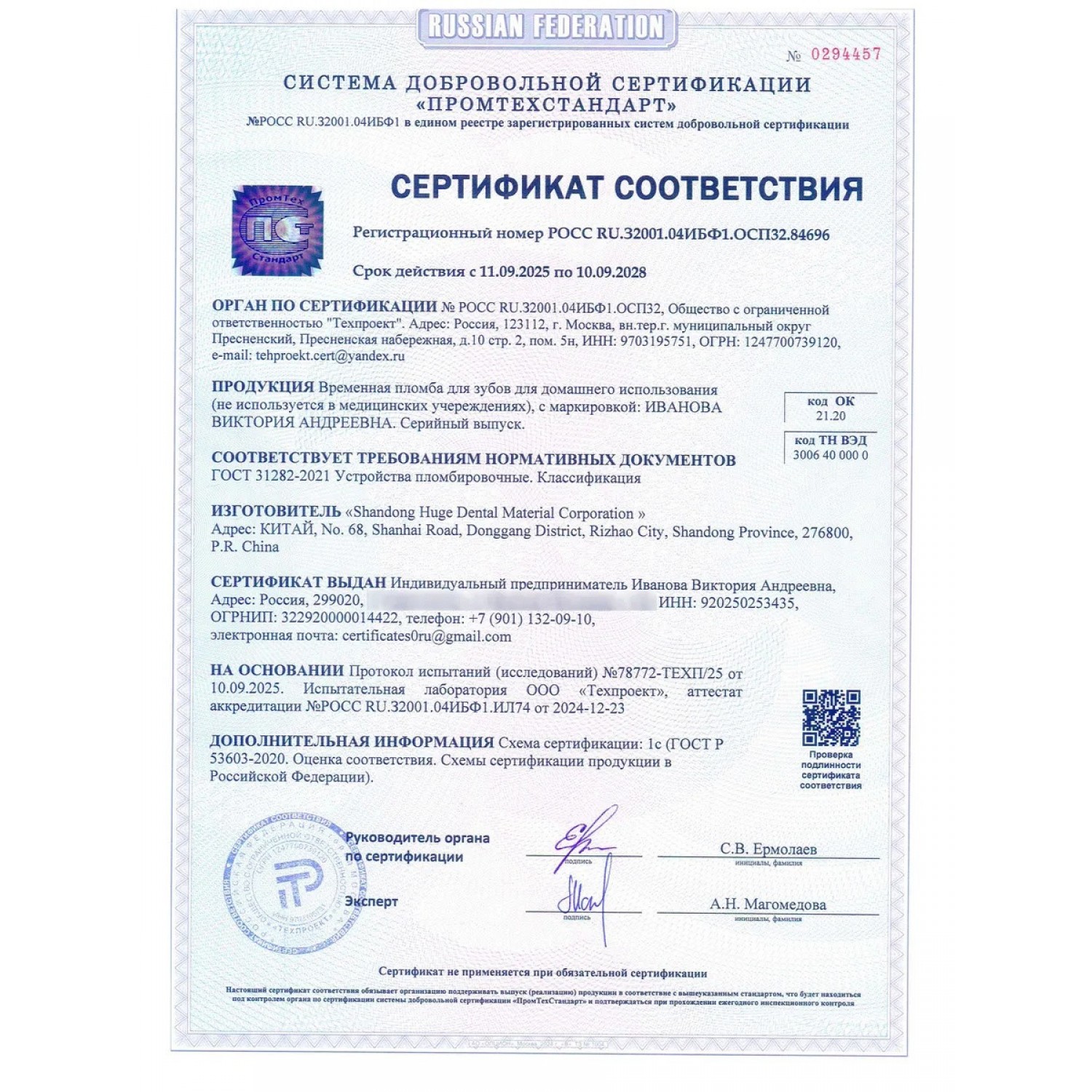 Способ применения: Кладём в миску от 5 до 15 гранул (в зависимости от размера скола). Заливаем горячей водой. Смешиваем до однородной прозрачной массы. Для надёжного сцепления очищаем место установки пломбы. Достаём гель, немного охлаждаем и придаём ему необходимую форму. Плотно помещаем пломбу в изъян зуба, либо имплантируем весь зуб. Остужаем пломбу холодной водой. Если не получилось с первого раза прикрепить пломбу, попробуйте снова. Временные пломбы можно многократно разогревать. Во время пользования имплантом запрещено пить горячие напитки! Стоматологический материал пломба для зубов для срочного ремонта естественных и искусственных зубов. Временная пломба - идеальное решение для всех, кто нуждается в быстром и качественном ремонте зубов. Этот зубной материал позволит вам с легкостью восстановить поврежденный зуб за считанные минуты. Инновационный материал - термоформируемый стоматологический силикон поможет сделать это самостоятельно. Это особенно удобно, если вы оказались в пути или находитесь вдали от доступной стоматологической помощи. С использованием временной пломбы для зубов вы сможете самостоятельно провести ремонт зуба: отличный вариант для временной пломбы, устранения щелин и даже полноценной замены целого зуба, скола (силиконовые накладные виниры). Пломба для зуба избавит вас от мучительных болей, при приеме пищи или скроет дефекты отсутствия зубов. Сами гранулы выполнены из высококачественного материала - термоформируемого стоматологического силикона, который позволяет им долго сохранять свою прочность и естественный внешний вид. Гиппоаллергенный материал полностью безопасен при использовании. Временная пломба для зубов - это универсальный комплект, который содержит материалы для пломбировочного ремонта верхних и нижних зубов. Она может использоваться для временной фиксации брекетов, имплантов, виниров, накладных зубов, вставная челюсть и других протезов. Набор можно использовать для формирования женских или мужских накладных зубов, как виниры и вампирские клыки на праздник или хэллоуин. Они прекрасно смотрятся и дополнят вашу индивидуальность.