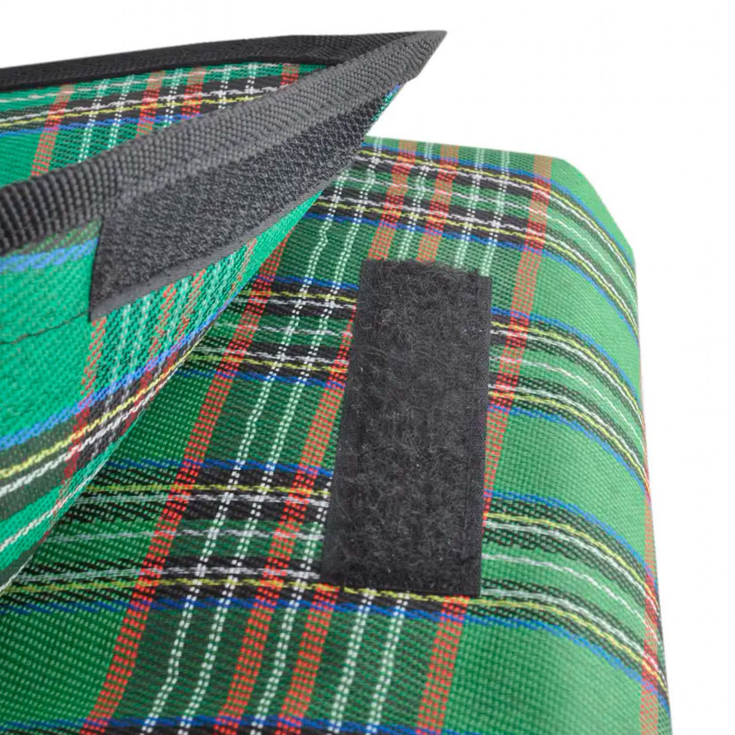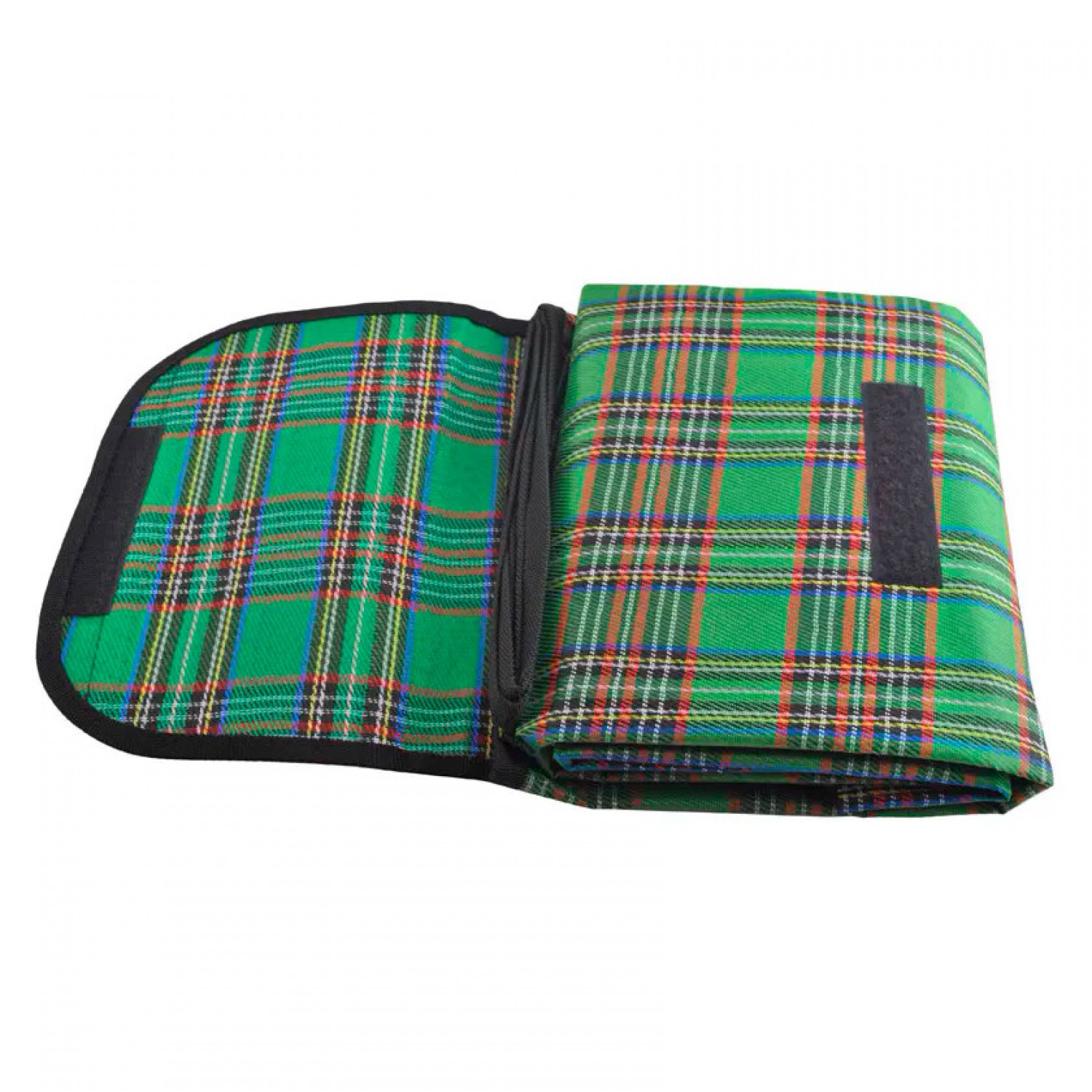Верхний слой водонепроницаемого пледа выполнен из неприхотливого полиэстера, отлично поддающегося стирке. В сложенном виде коврик представляет собой компактную симпатичную сумочку, застегивающуюся на липучку. Его можно нести в руке, а можно кинуть в рюкзак, в машину или даже в корзинку с едой — он не занимает много места.