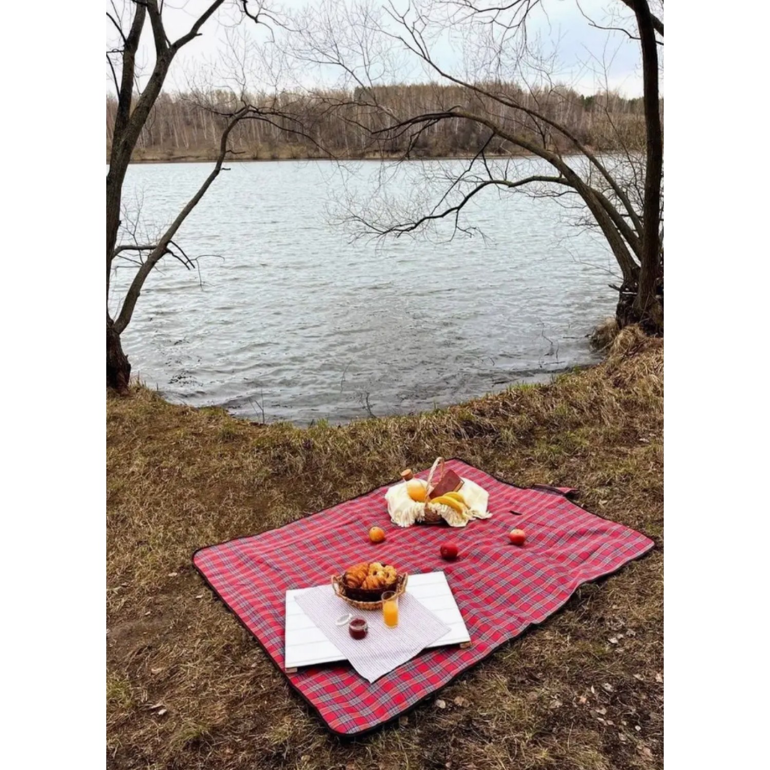 Покрывало позволит комфортно расположиться небольшой семье или компании друзей. Непромокаемая подкладка позволит сидеть на пледе не боясь испачкаться, промокнуть или замёрзнуть.
