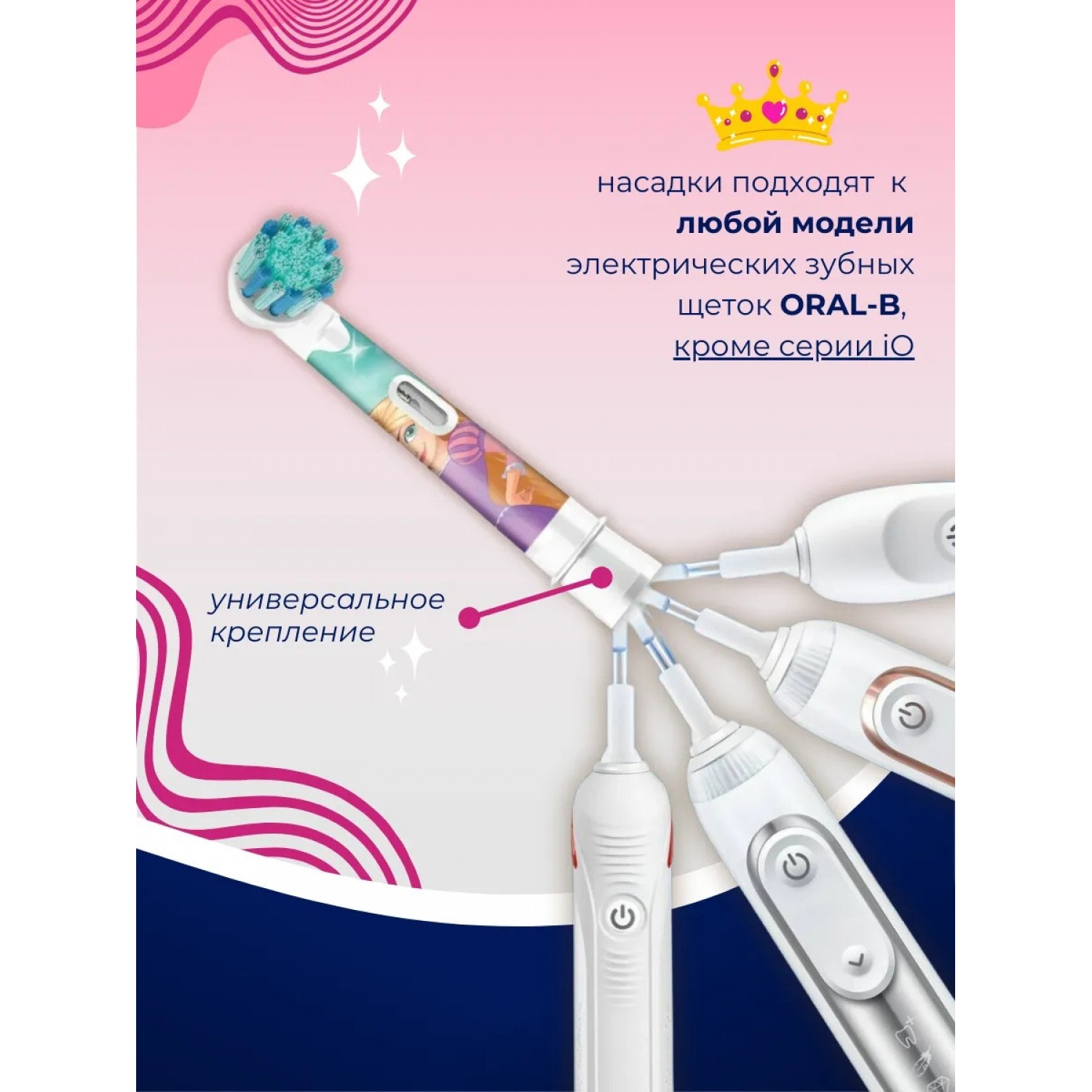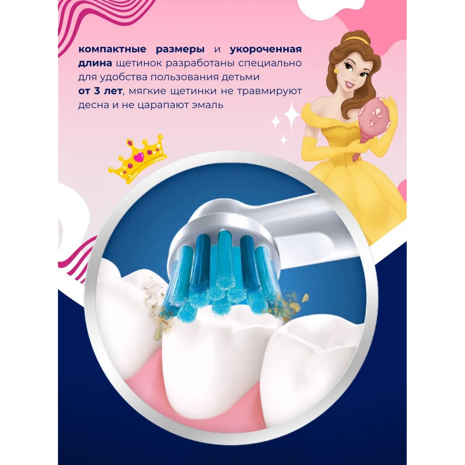 На насадке может быть изображена любая принцесса Дисней. Компактные размеры и укороченная длина щетинок в данной насадке разработаны специально для удобства пользования детьми от 3 лет. Мягкие щетинки не травмируют десна и не царапают эмаль. Голубые щетинки не только тщательно удаляют налет с жевательной поверхности зубов, но и служат индикатором износа. Смена цвета щетинок указывает на необходимость смены насадки. Насадка Oral-B Stages Kids Принцессы подходит ко всем электрическим зубным щеткам Oral-B, кроме звуковых электрических зубных щеток Oral-B Sonic/Pulsonic и щеток iO. В комплект входит 1 насадка в герметичной индивидуальной упаковке. Стоматологи рекомендуют менять насадки не реже, чем раз в 3 месяца.