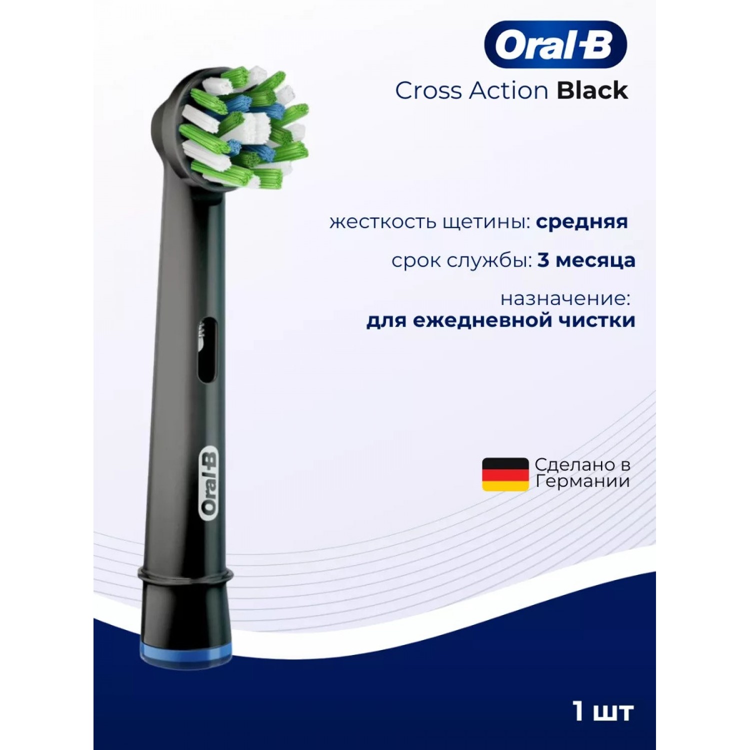 Насадка для электрической зубной щетки Oral-B Cross Action Black разработана для качественного ежедневного ухода за полостью рта, что делает её незаменимым аксессуаром для всех, кто заботится о здоровье своей улыбки. Инновационный дизайн насадки обеспечивает максимальное удаление зубного налета за одну чистку, эффективно поддерживая гигиену полости рта. Средняя жесткость щетинок гарантирует тщательное и комфортное очищение, а их закругленные кончики обеспечивают безопасность для эмали и дёсен. Круглая форма насадки позволяет эффективно охватывать поверхность каждого зуба. Уникальное расположение щетинок под углом 16 градусов способствует глубокому очищению зубной поверхности и преддесневой зоны. Перекрестные щетинки разрыхляют и поднимают налет, способствуя его удалению из труднодоступных мест. Возвратно-вращательный механизм электрической щетки в сочетании с насадками Cross Action Black помогает проникать даже в узкие межзубные промежутки, предотвращая заболевания полости рта и способствуя общей гигиене.