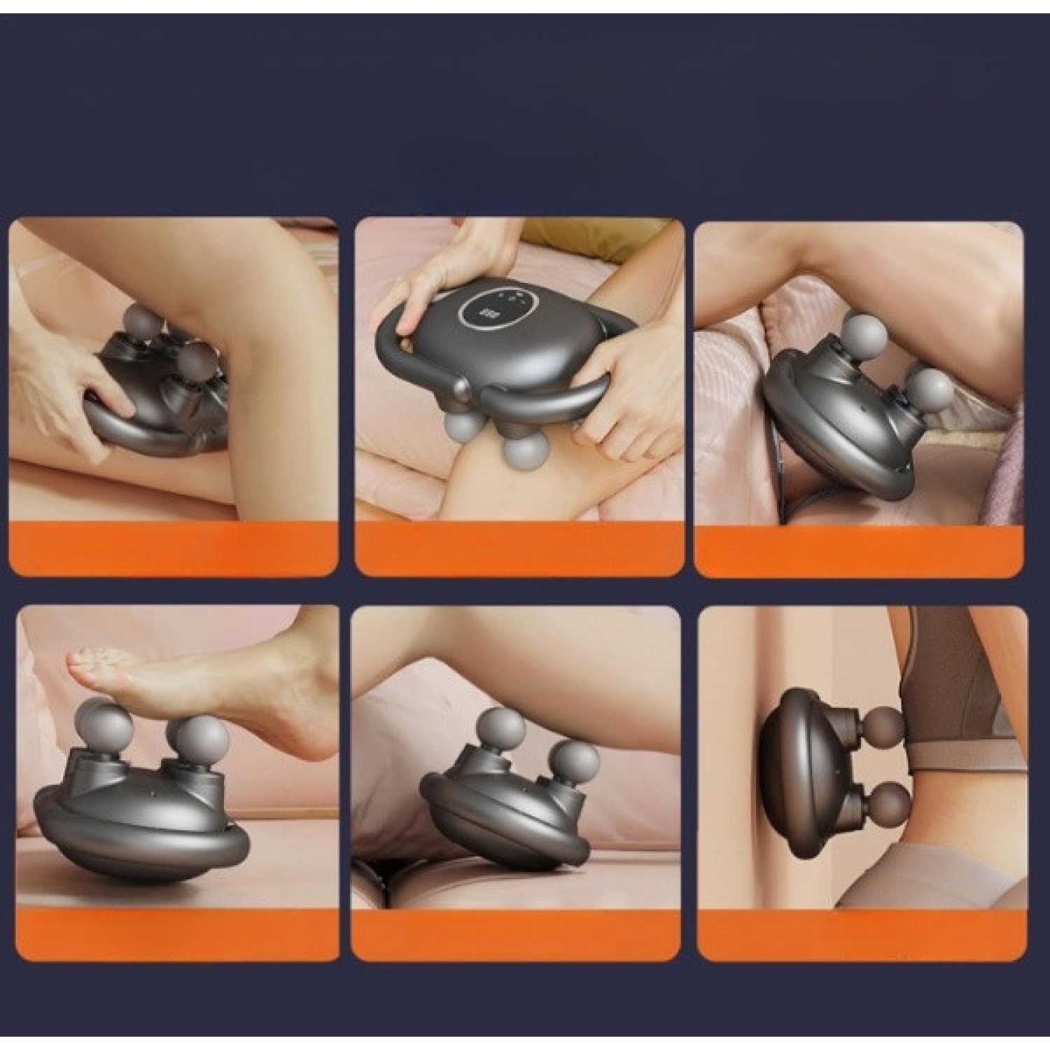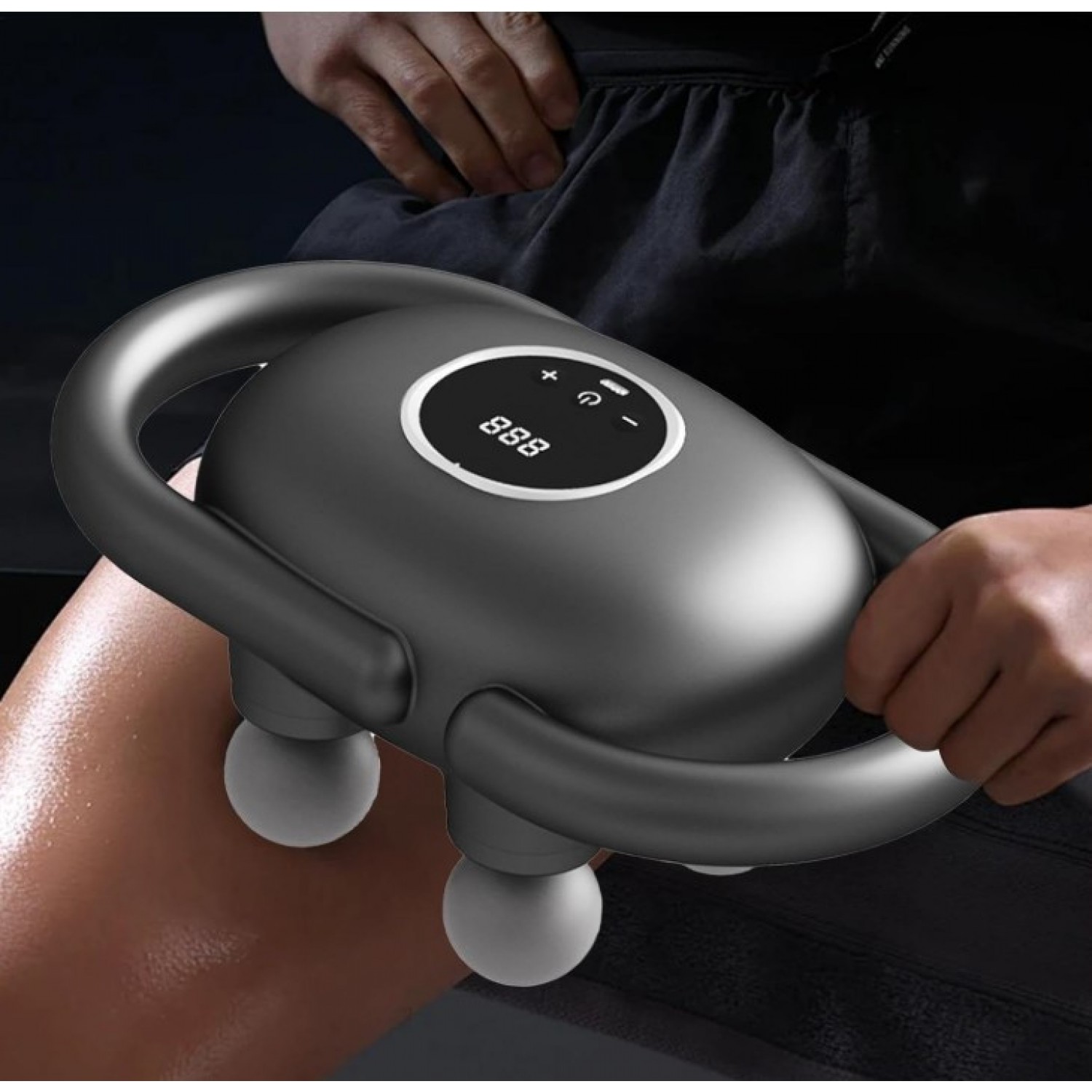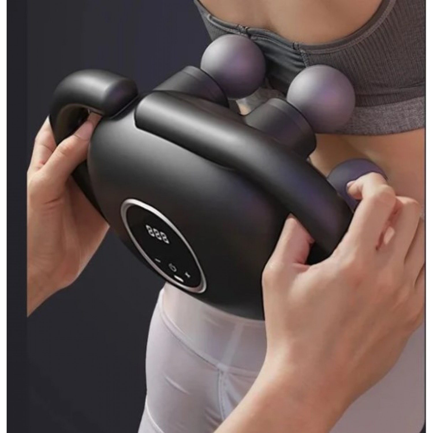 Массажер для мышц с 4 головками оснащен интеллектуальной технологией, предлагая 6 режимов и 20 уровней интенсивности.