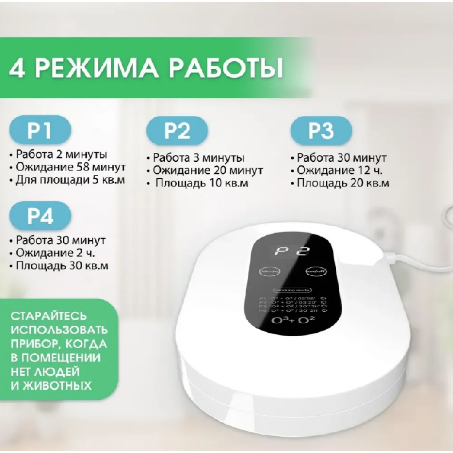 Четыре режима работы помогают обеспечивать наилучшую эффективность в очистке воздуха бытовой ионизатор удалит даже самые мельчайшие частицы, которые не всегда улавливаются обычными фильтрами. В результате Вы получите уют и комфорт в вашем доме или квартире. Бесшумный прибор лёгок и прост в использовании. Дезинфектор автоматически регулирует интенсивность очистки, и вы можете выбрать режим работы в зависимости от ваших потребностей. Компактный дизайн позволит легко разместить его в любом помещении. Забудьте о загрязненном воздухе и наслаждайтесь чистотой и свежестью каждый день с этим озонатором!