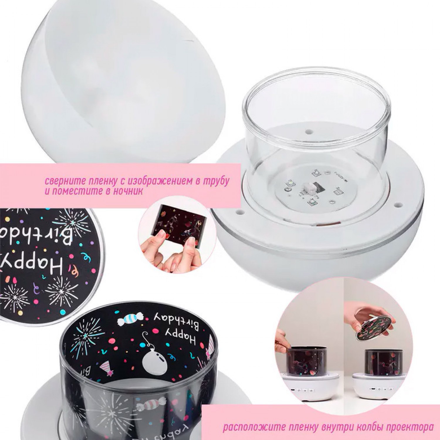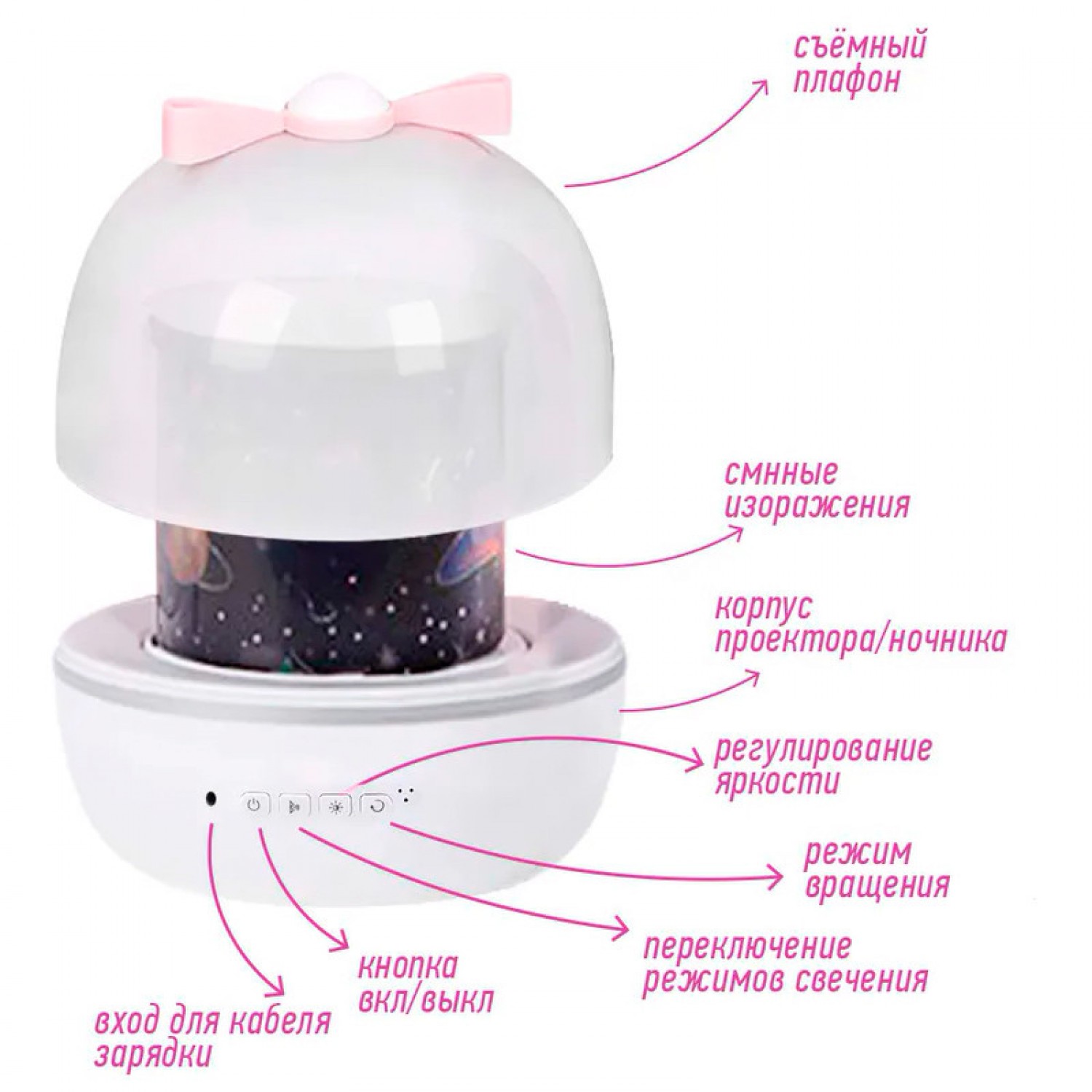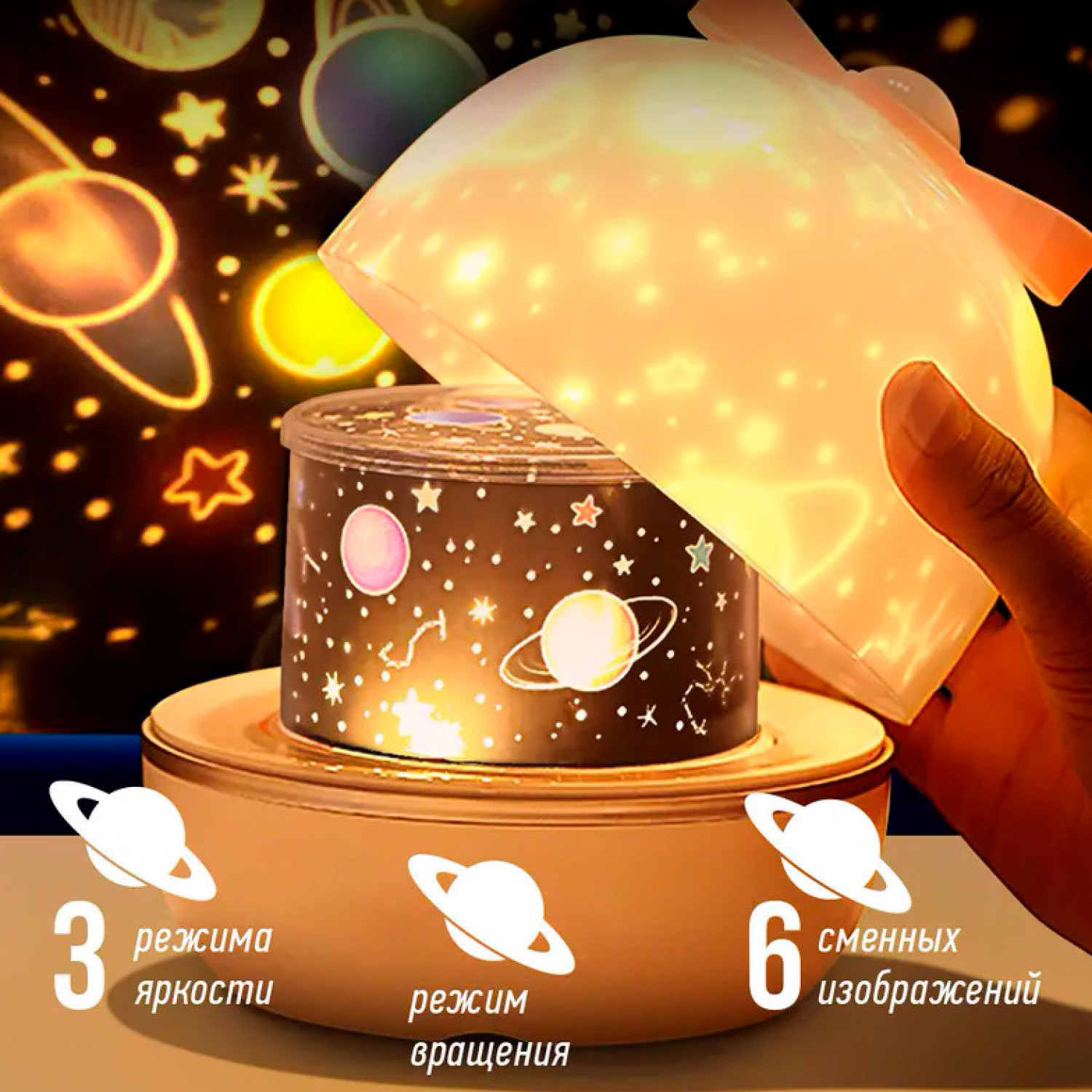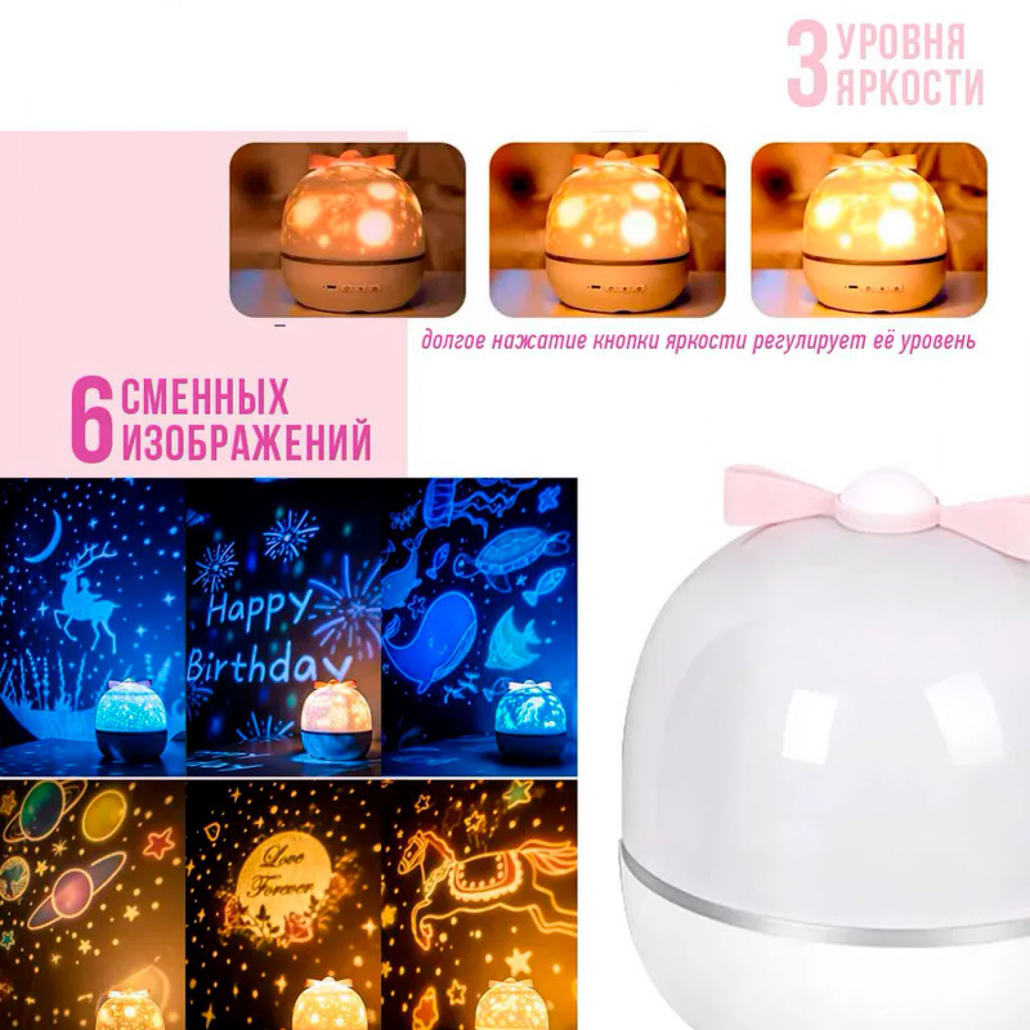 Ночник-проектор с шестью меняющимися насадками для проекции создаст волшебную атмосферу!
