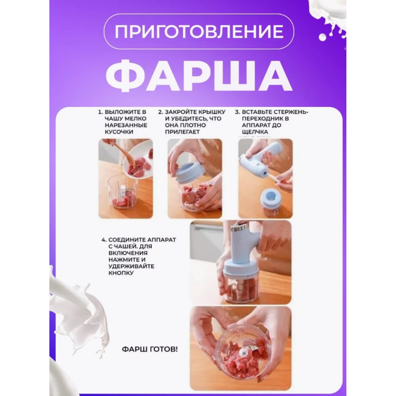Насадки: для измельчения; для взбивания; для замешивания теста.