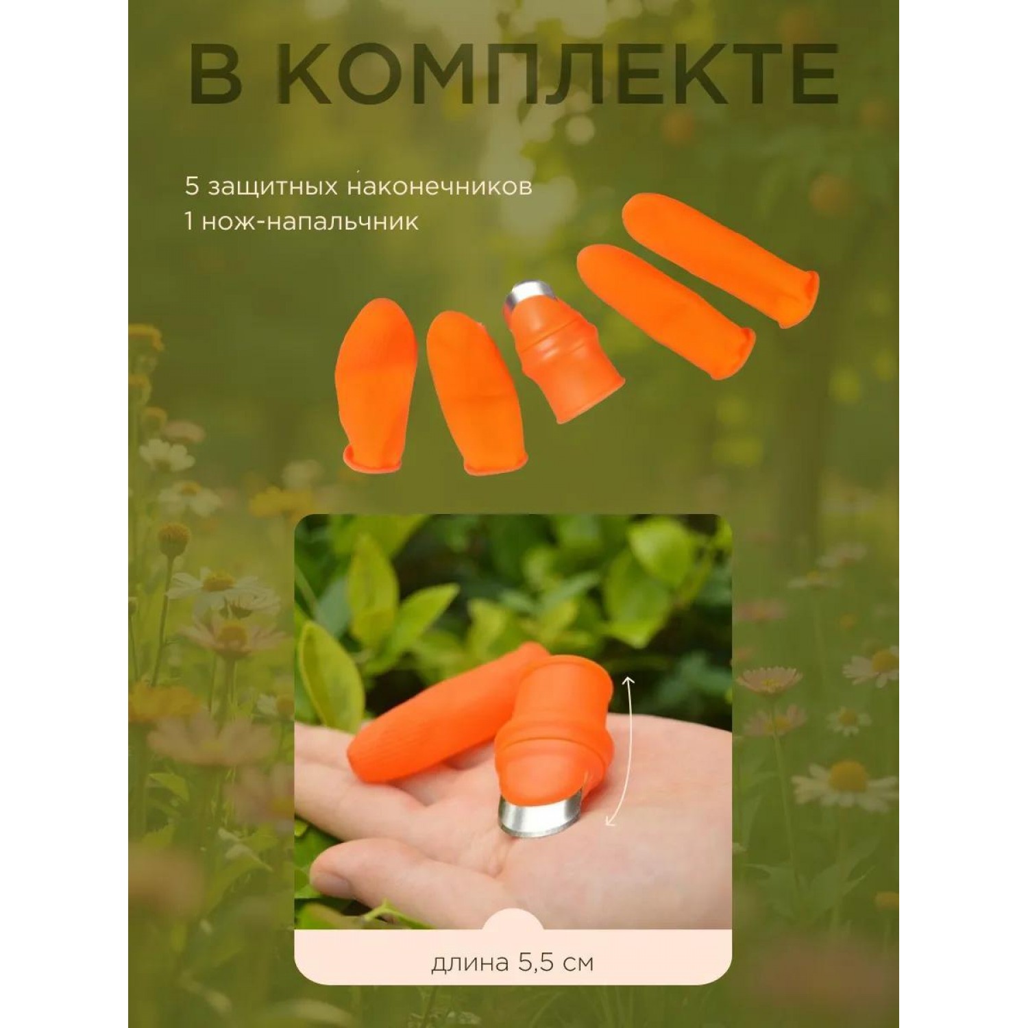 Набор состоит из одного напальчника на большой палец с острым, прочным металлическим лезвием, и 4-ёх защитных напальчников без лезвия. Этот набор обязательно оценит каждый дачник и садовод, потому что он незаменим при таких делах как - сбор урожая, подходя для таких культур как: огурцы, кабачки, томаты, перец, баклажаны, тыква, клубника, виноград, крыжовник, зелень, лук и.т.д., далее конечно садовый нож на пальце поможет вам обрезать усы у растений, срезать шипы и ненужные ветки, отцветшие цветы, ботву и пасынки ( прекрасный помощник в теплице с томатами, и виноградом ).