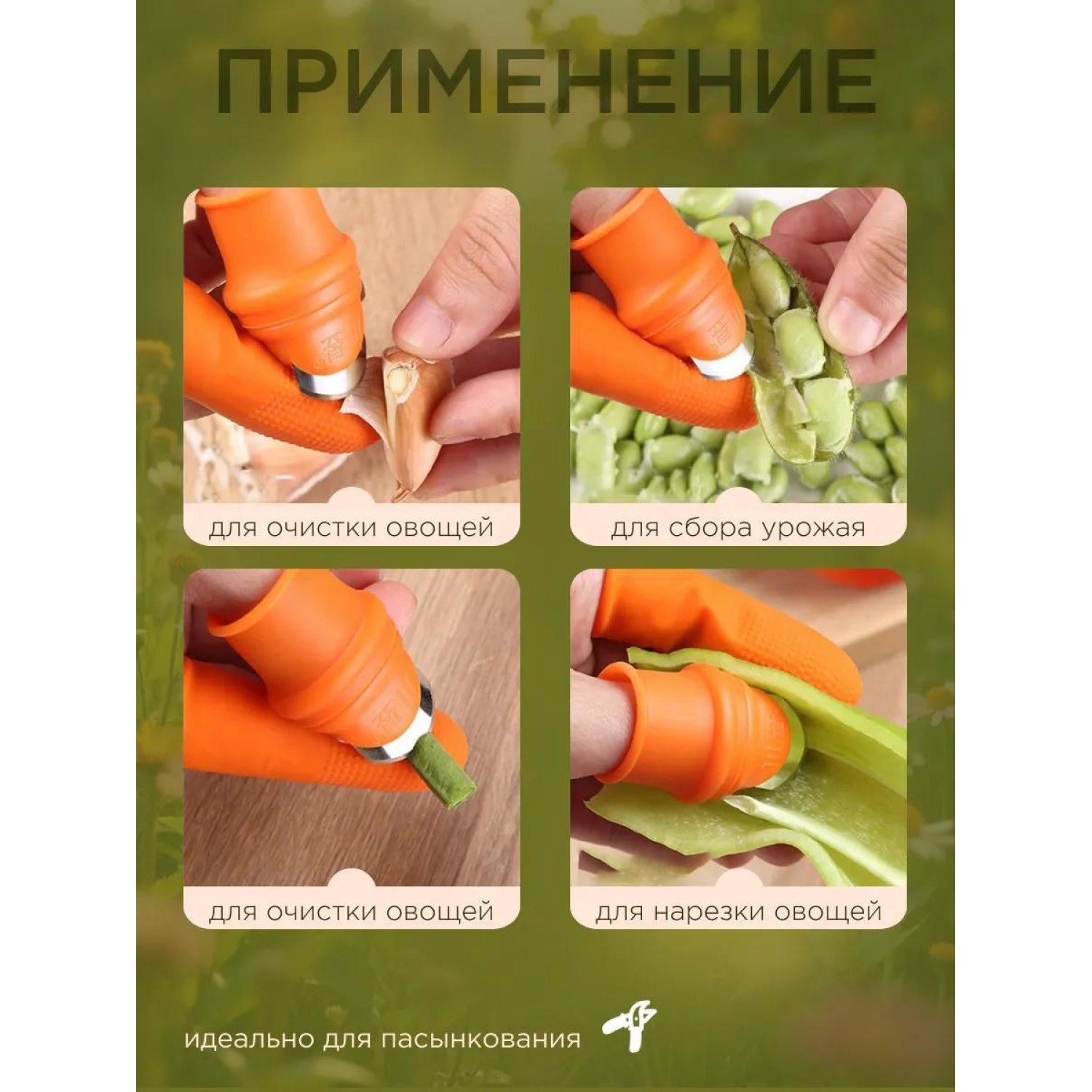 Поработав в саду и огороде вы обязательно возьмете этот прекрасный напальчник с лезвием и в дом, потому сто он и там отличный помощник : чистка овощей, молодой моркови и картофеля, фруктов, обработка овощей и срез ботвы, зачищение от лишней почвы, обрезание зелени и лука. Поэтому этот набор находка для каждого дома и участка. Ну и конечно он обеспечивает безопасность вашим пальцам, благодаря четырем напальчникам без лезвий. Все напальчники изготовлены из прочного, гибкого, не скользящего резинопластика, комфортны и безопасны в использовании, повторяя форму ваших пальчиков.