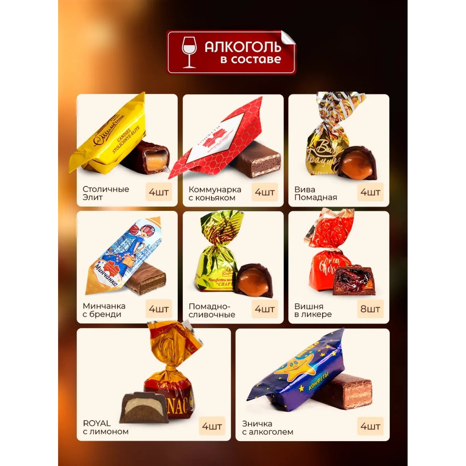 С приближением волшебного Нового года и Рождества все вокруг наполняется ожиданием чуда и радости. Этот период становится особенно ярким, когда мы задумываемся о сюрпризах маме, папе, подругам и другу. И что может быть более соблазнительным, чем подарочный набор «Еловый венок» с каплей алкоголя для взрослых? Оригинальный сладкий подарок — это не только изысканное угощение, но и символом тепла и уюта, который мы приносим на праздники. Создавая великолепный посыл в каждой конфете белорусские мастера не пожалели сил, чтобы порадовать вас стильной упаковкой и вкусным содержанием. Вы получаете не просто сладости, а истинное новогоднее волшебство, способное вдохновить, обрадовать и исполнить любое желание в 2026 году Лошади. Эксклюзивные подарочки украсят любой корпоратив. Внутри симпатичных коробок прячутся «Столичные Элит» с удивительной жидкой начинкой, плавно переходящей в ароматный шоколад. «Коммунарка» с коньяком дарит каждому билет в незабываемое путешествие. Легкая и хрустящая «Минчанка» идеально сочетает вафли с шоколадкой и бренди хорошей выдержки. Она буквально тает во рту, заставляя забыть о времени. Утонченная «Зничка» красиво завершит любое торжественное застолье, а «Спартак» с помадно-сливочным привкусом заворожит особым послевкусием. Настоящие сладкоежки по достоинству оценят «Вишенку» с и умеренной крепостью. А как насчет «Вива Грациозо» с алкогольными аккордами под чай или кофе? Коробочка будоражит воображение, превращается в изысканное поздравление для коллег на работе, руководителей и уважаемых учителей. Положите под елку или вручите рождественский презент самым дорогим людям - брату, сестре, крестной - одновременно обескураживая и радуя их. Вы можете смело презентовать в офисе или отправить почтой родителям, а также бабушке и дедушке. Это самый удачный способ сказать «спасибо» дяде и тете и показать свою благодарность.