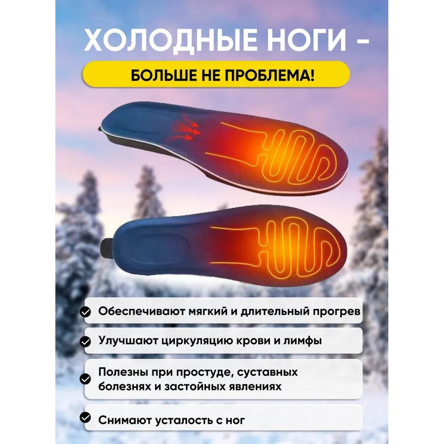 Беспроводные нагревающиеся стельки для обуви предлагают инновационное решение холодным зимним дням. Равномерный подогрев ноги обеспечивает до десяти часов тепла. Анатомическое строение устройства позволяет использовать их для кроссовок, ботинок, валенок и прочей зимней обуви. Греющие стельки оснащены встроенным аккумулятором емкостью 2000 мАч, что позволяет поддерживать температуру без использования проводов. Умные стельки с тремя режимами подогрева ноги от 40 до 55 градусов обеспечивают оптимальный уровень тепла и равномерно распределяют его от пяток до пальцев по всей стопе. Самогреющие стельки отличаются высокой устойчивостью благодаря нескользящей поверхности, не мешают при ходьбе.