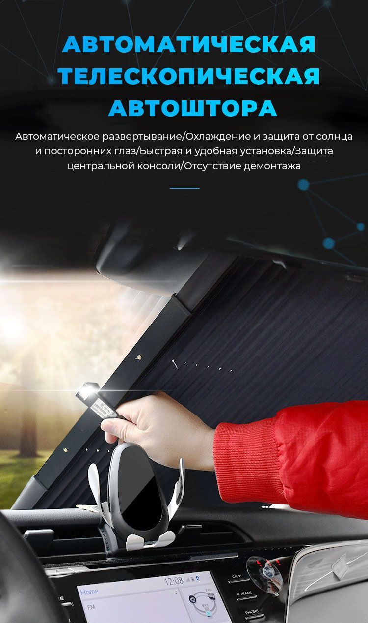 Телескопическая автоматическая штора защитит ваш автомобиль от выгорания тканевых покрытий и пластиковых деталей внутри салона. Быстрое открытие и компактное хранение. Не боится атмосферных воздействий.