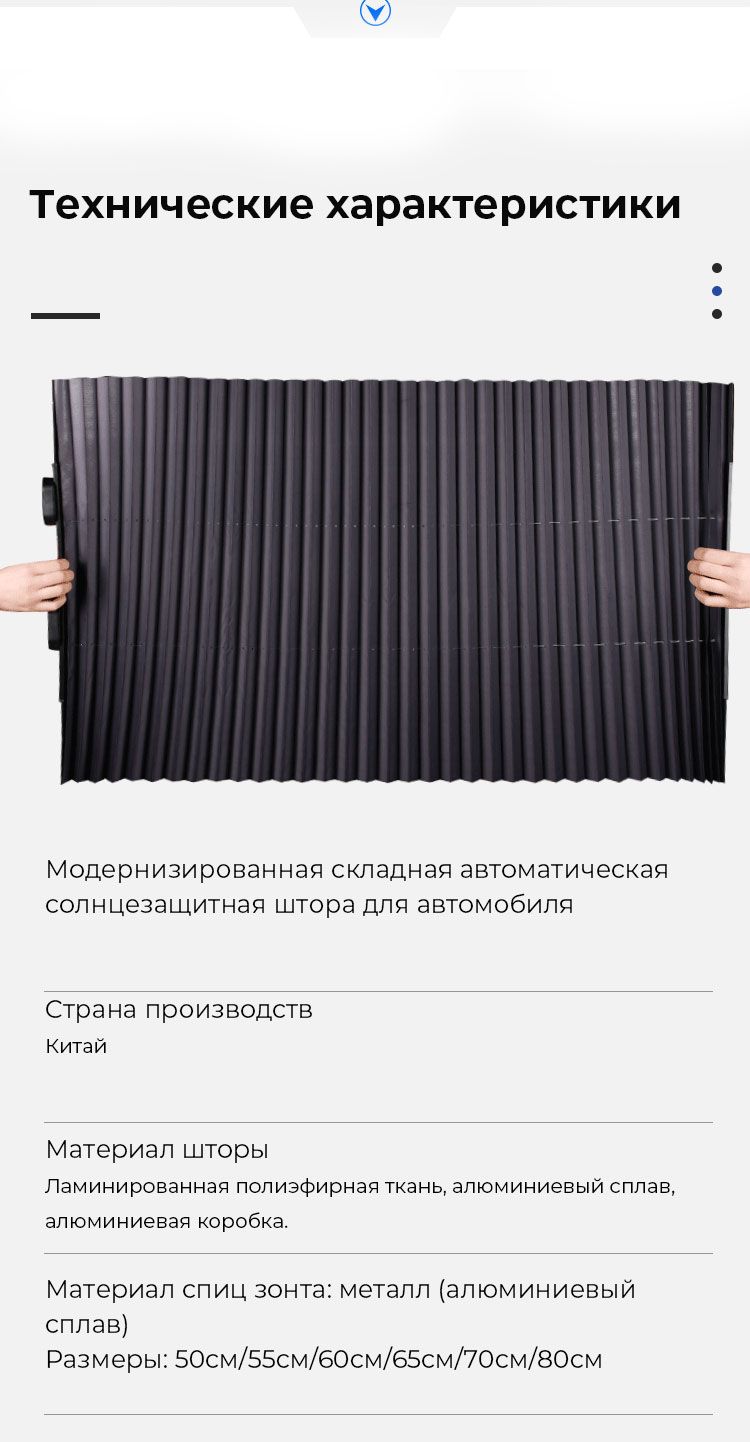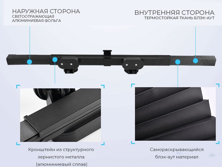 Основное отличие нашей автоматической шторы в легкости, компактности, телескопическом разворачивании, устойчивости к высоким температурам и долговечности!