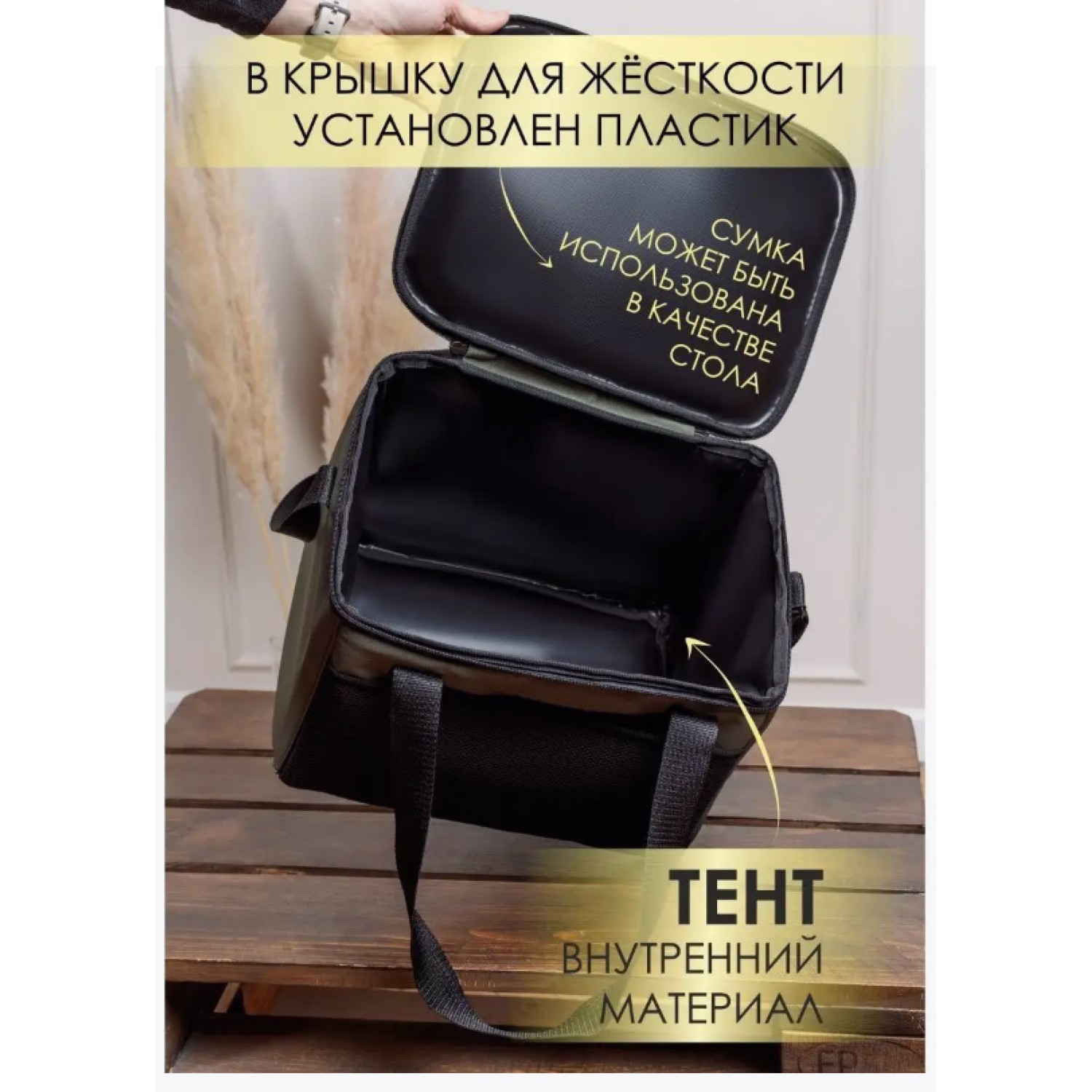 Термосумка холодильник размер 40x30x30 см объем 36 л - мощный помощник для активных людей! Cумкахолодильник способна сохранять обеды, напитки и другие товары свежими и охлажденными в течение длительного времени. Переносная сумка предназначена для поддержания оптимальной температуры вашего питания даже в самых экстремальных условиях. Благодаря инновационному материалу изотермической пленки, она обеспечивает высокий уровень сохранности содержимого от перегрева или заморозков. Термо короб может быть использован не только для походов и кемпинга, но также станет отличным выбором в дорогу для поездок на дачу, пикника на природе или просто для работы доставки курьером. Холодильник походный вместительный, может использоваться и имеет достаточно места для различных предметов: еды, посуды, бутылок с водой, кормления для детей или ланч бокса. Уникальная конструкция крышки позволяет использовать ее, как столик легко организовать пространство внутри благодаря специальным отделениям и органайзерам. Переносной холодильник сохранит ваши горячие блюда готовыми к приему даже после долгого авиаперелета или дальней поездки, может быть использована для доставки еды. Но её настоящее предназначение - это охлаждение! Благодаря специальному термоэлементу в сумке, вы сможете наслаждаться свежими напитками и прохладительными закусками на отдыхе на природе. Походная сумка выполнена в цвете хаки, она подойдет как женщинам, так и мужчинам.