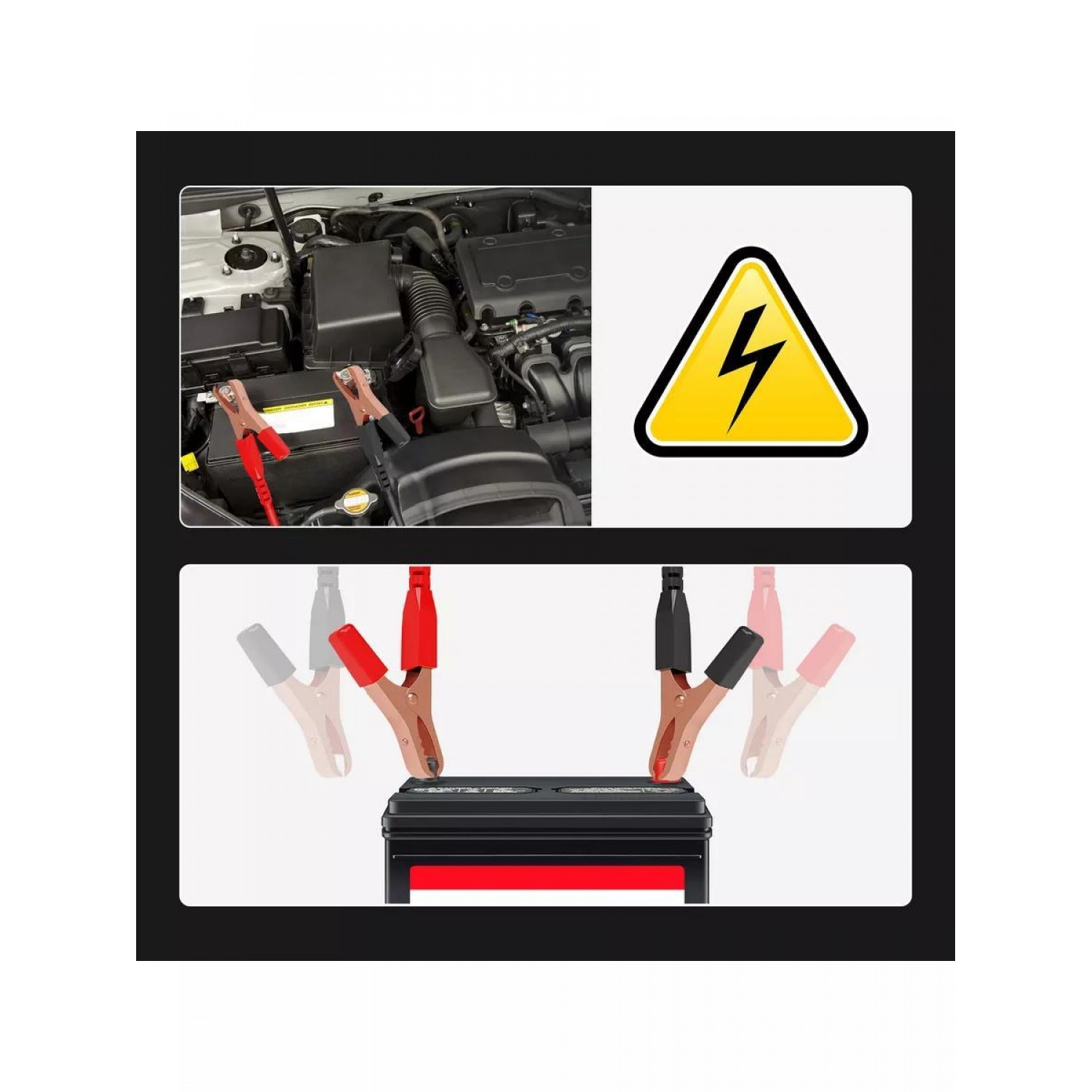 Безопасный дизайн и безопасное использование: Тестер аккумуляторов оснащен защитой от обратной полярности. Если вы случайно перепутаете провода, не беспокойтесь, в этом случае тестер не будет работать, чтобы предотвратить повреждение внутренней цепи, что хорошо защищает устройство и обеспечивает долгий срок службы автомобильного аккумулятора. (Если зажимы не правильно зажаты, экран будет мигать.)