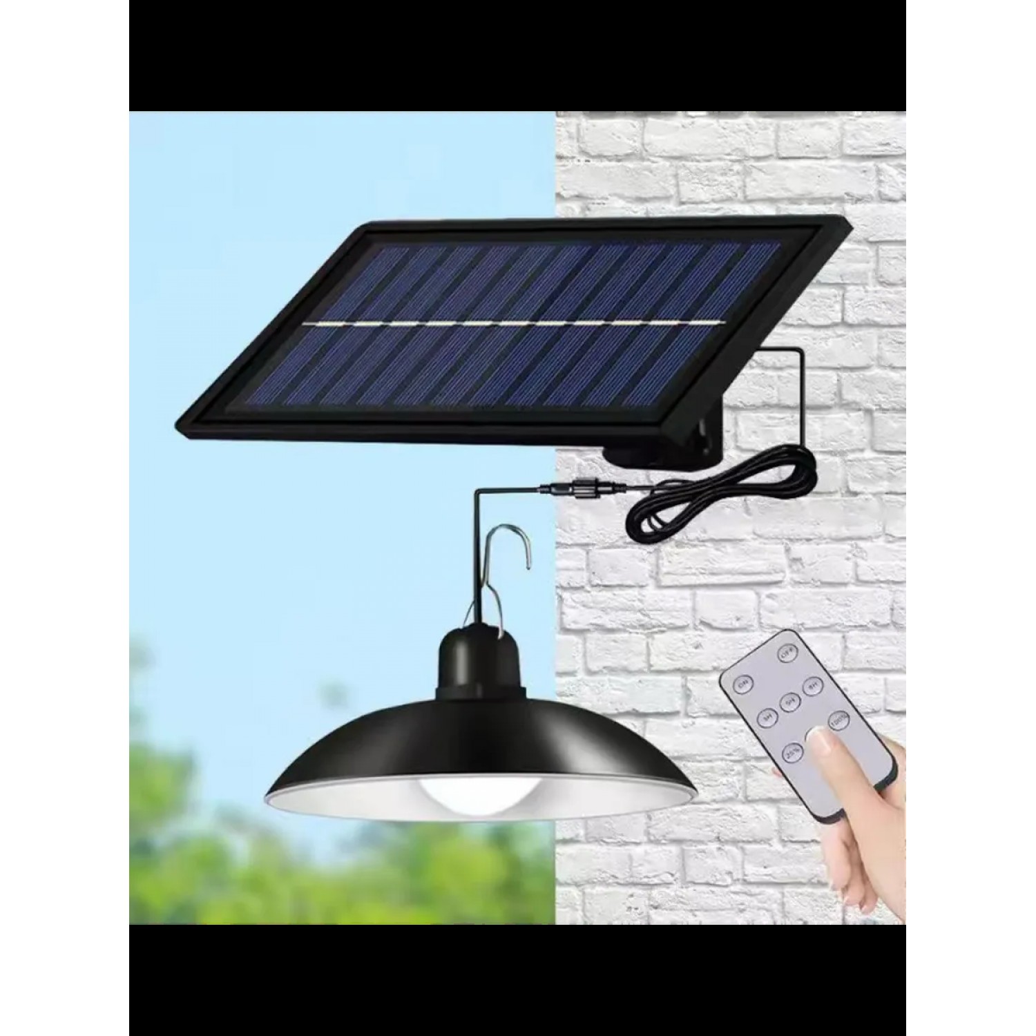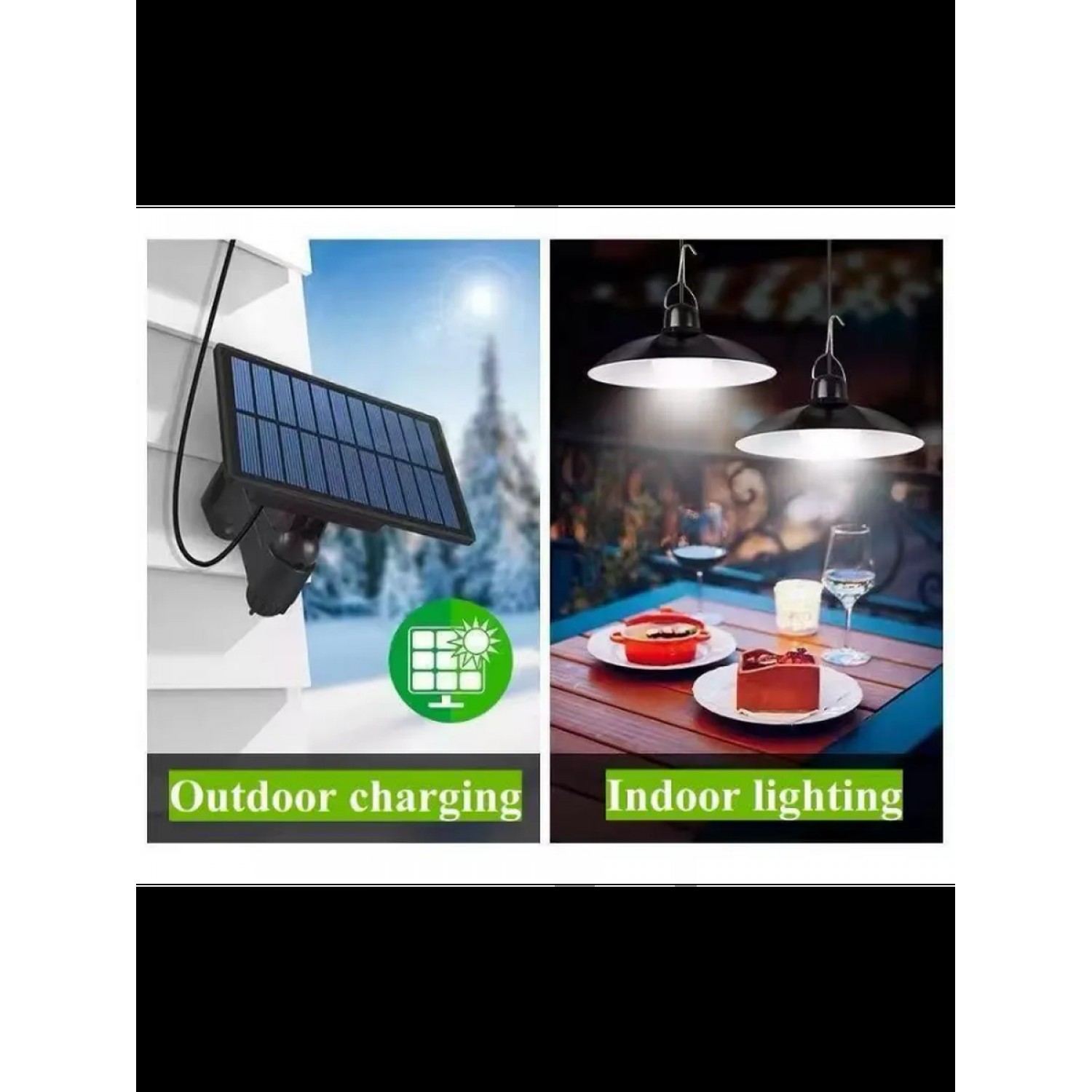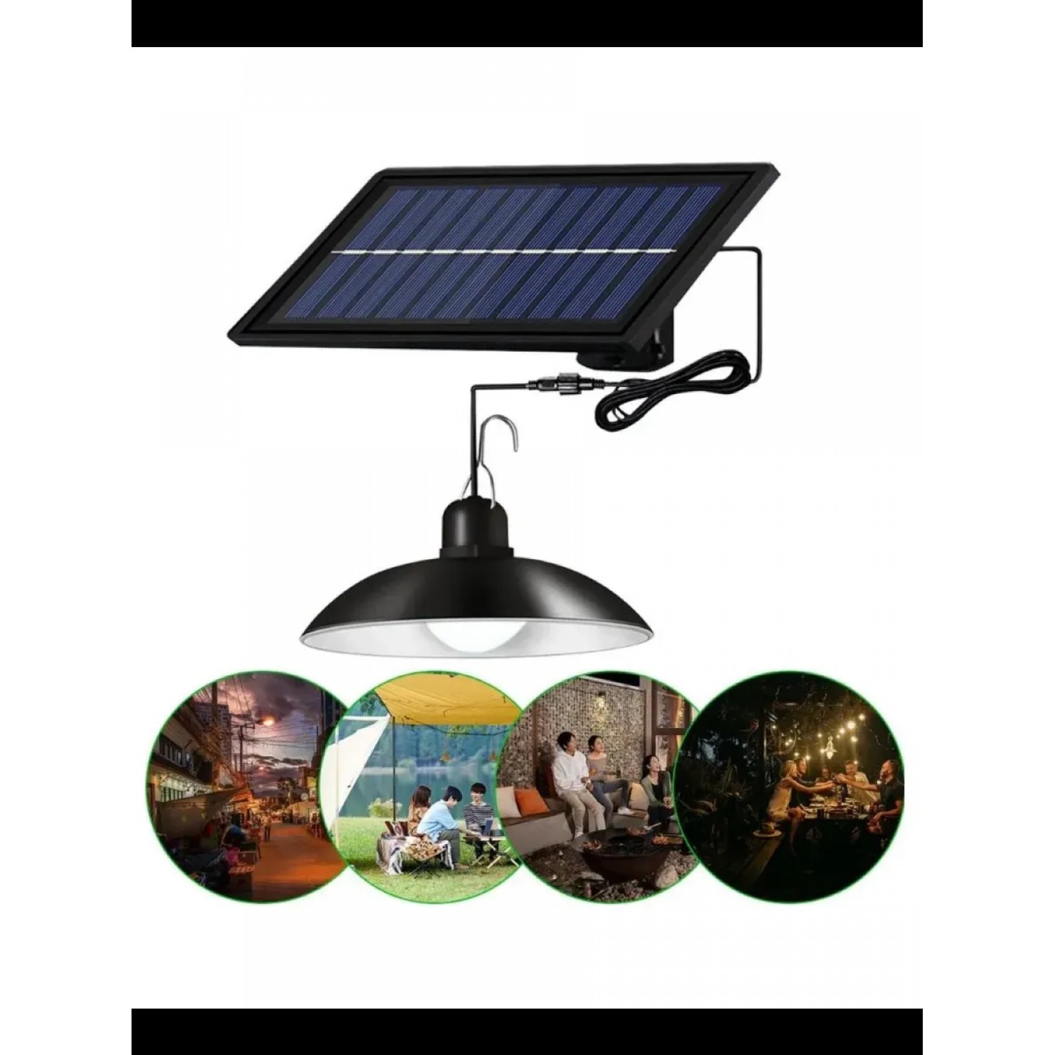 Подвесной светодиодный светильник на солнечной батарее — это удобное и энергоэффективное решение для освещения небольших пространств. Он подойдёт для использования во дворе, коридоре, у бассейна или на дороге. Характеристики: Напряжение: 5,5 В. Материал изделия: ABS-пластик. Тип лампы: светодиодная. Мощность: 3 Вт. Площадь освещения: 5 кв. м. Цветовая температура лампочки: 3000 К. Особенности: датчик освещения, дистанционное управление. Солнечная панель и аккумулятор большой ёмкости обеспечивают зарядку светильника в течение дня и его работу в ночное время. Корпус светильника водонепроницаем, что позволяет использовать его в любых погодных условиях. В комплект входят солнечная батарея, пульт дистанционного управления, крепёжные винты, подвесной светильник и кабель длиной 3 метра.