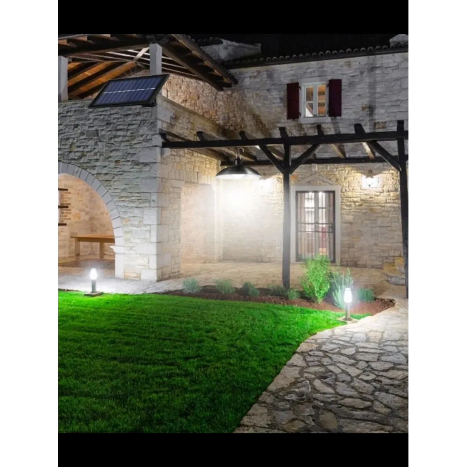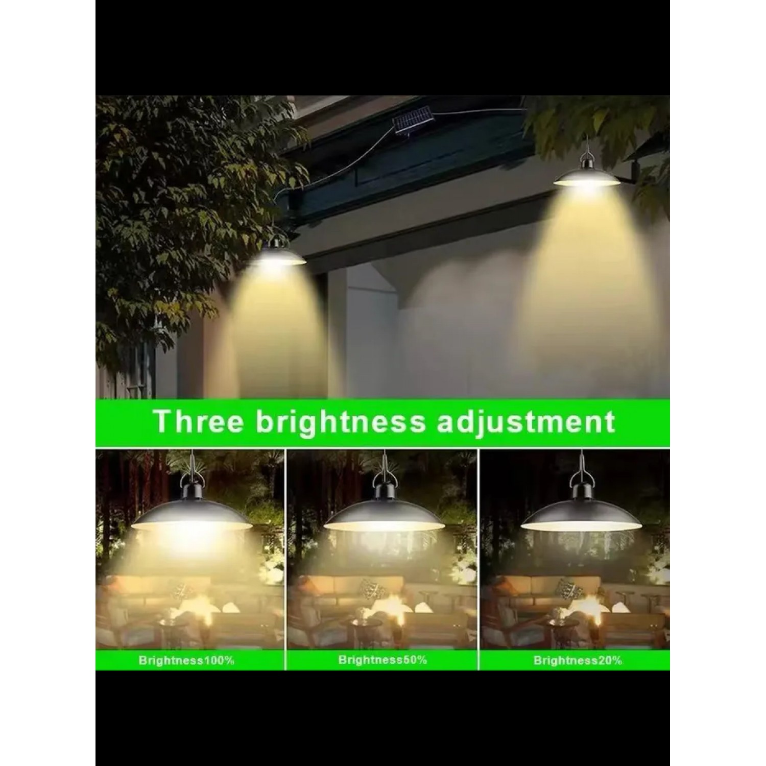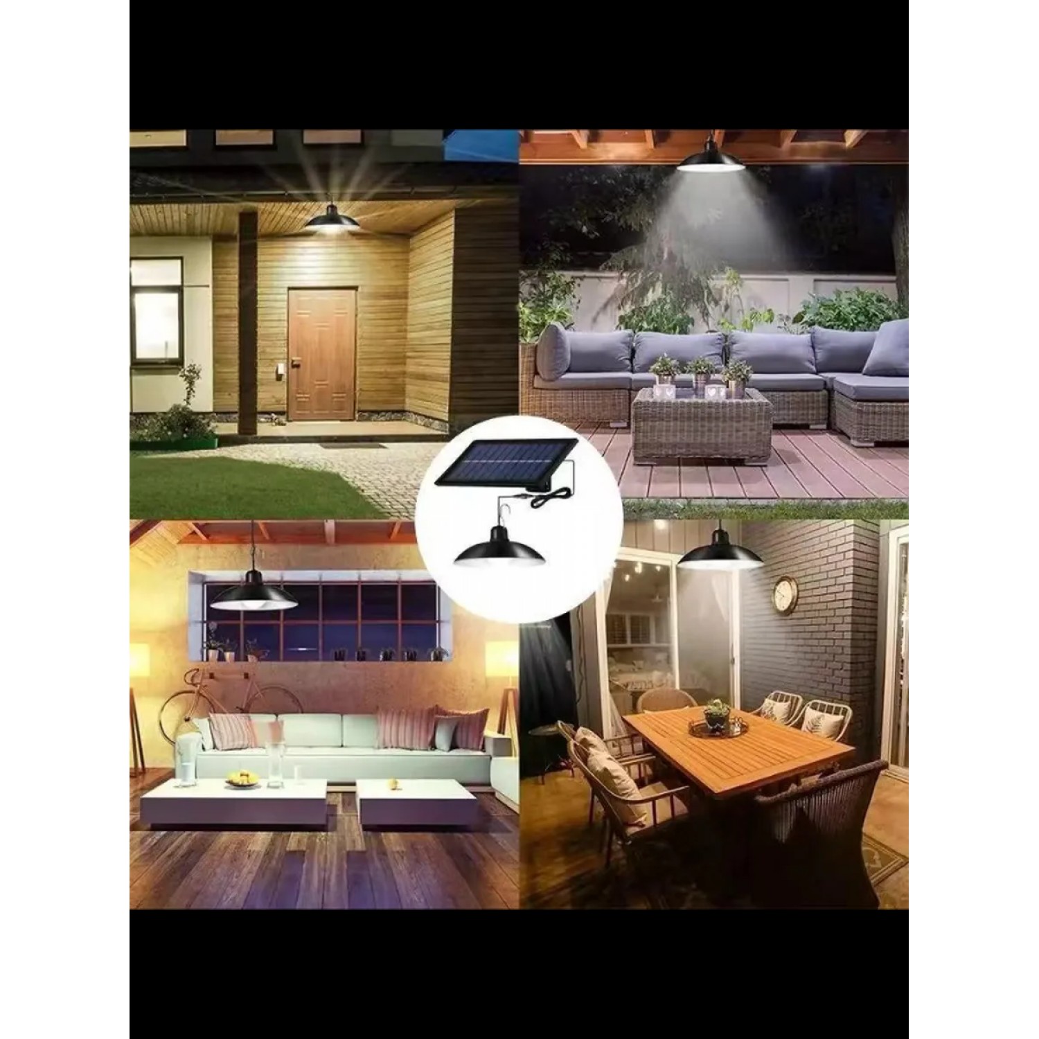 Подвесной светодиодный светильник на солнечной батарее — это удобное и энергоэффективное решение для освещения небольших пространств. Он подойдёт для использования во дворе, коридоре, у бассейна или на дороге. Характеристики: Напряжение: 5,5 В. Материал изделия: ABS-пластик. Тип лампы: светодиодная. Мощность: 3 Вт. Площадь освещения: 5 кв. м. Цветовая температура лампочки: 3000 К. Особенности: датчик освещения, дистанционное управление. Солнечная панель и аккумулятор большой ёмкости обеспечивают зарядку светильника в течение дня и его работу в ночное время. Корпус светильника водонепроницаем, что позволяет использовать его в любых погодных условиях. В комплект входят солнечная батарея, пульт дистанционного управления, крепёжные винты, подвесной светильник и кабель длиной 3 метра.