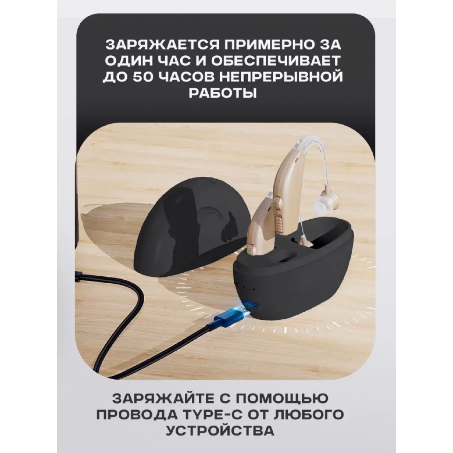 Описание: 1. Использование высококачественных цифровых чипов позволяет эффективно снижать уровень шума и уменьшать повреждение барабанной перепонки. 2. Динамическая конструкция динамика позволяет обрабатывать принимаемый звук, делая его более четким. 3. Слуховые аппараты можно заряжать в течение 3 часов и использовать в течение 21 часа. Перезаряжаемый футляр для хранения полностью заряжен и позволяет зарядить аппарат 3-4 раза. 4. Благодаря футляру для хранения аппараты легко переносить, а компактный размер обеспечивает дополнительное удобство. 5. Звуковод можно сгибать и вращать на 360 градусов, что позволяет носить аппараты как слева, так и справа.