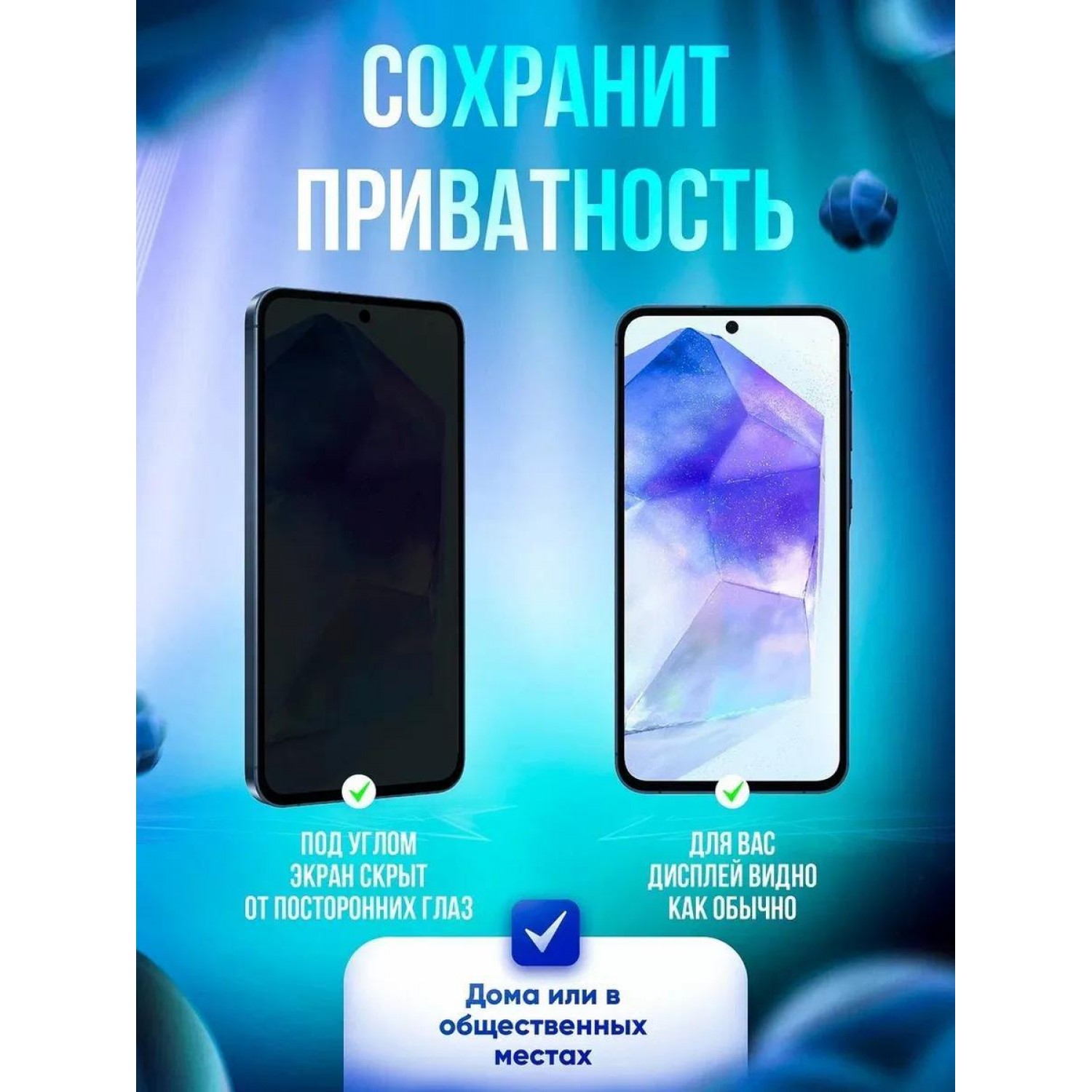Защитное стекло с технологией анти шпион — это специальный аксессуар, который обеспечивает конфиденциальность информации на экране устройства. Девайс имеет уникальное затемненное глянцевое покрытие, которое становится непрозрачным при просмотре под углом. Чем больше уровень поворота дисплея, тем темнее становится изображение, что помогает защитить личную информацию от посторонних глаз. Кроме того, бронь с рамкой обеспечивает дополнительную защиту экрана мобильного телефона при падении от порчи, царапин, трещин и других повреждений, как обычное противоударное стекло. Фактически, это необходимое дополнение к любому телефону, которое увеличивает его срок службы в несколько раз. Надежная и эффективная защита не влияет на чувствительность сенсоров, ее легко установить самостоятельно без разводов и пузырей.